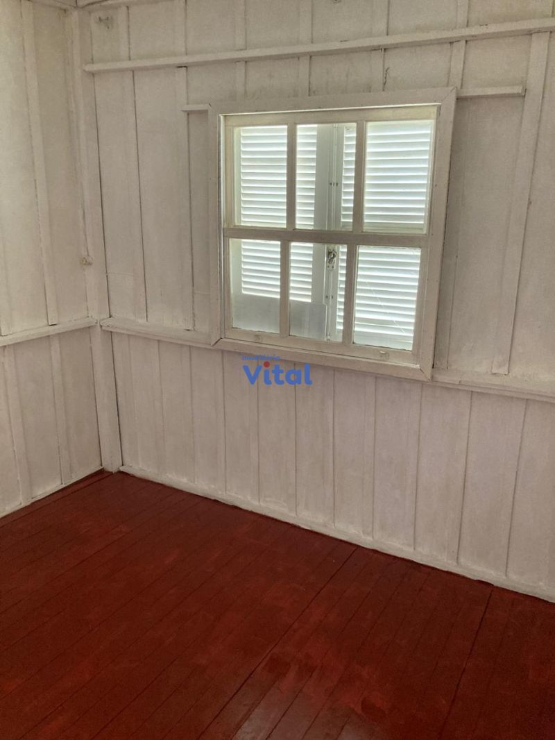Casa de madeira, fundos, com 50m², com dois dormitorios, um banheiro, sala, cozinha e area de serviço. Sem vaga para carro.