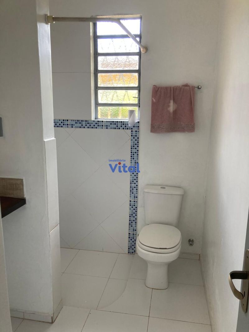Casa com dois dormitórios (um sendo suíte), dois banheiros (suíte e social), sala, cozinha, área de serviço, churrasqueira e garagem coberta para dois carros.