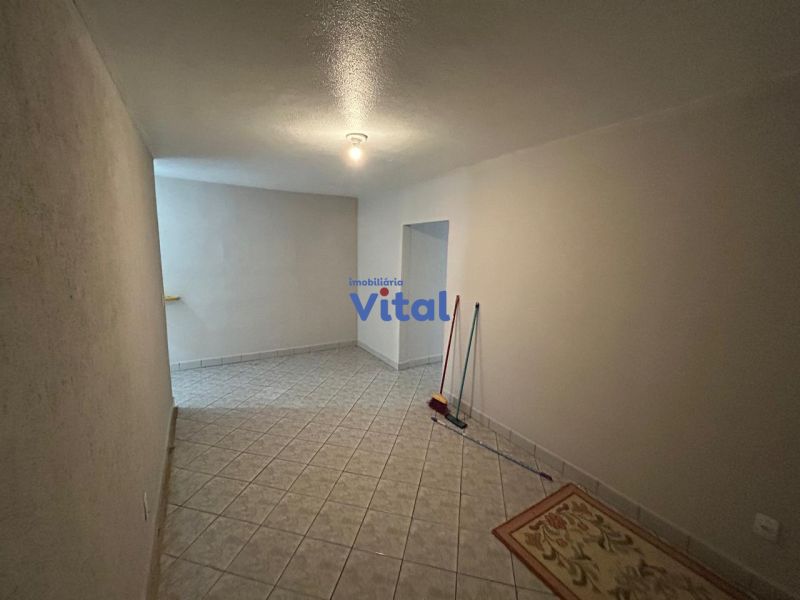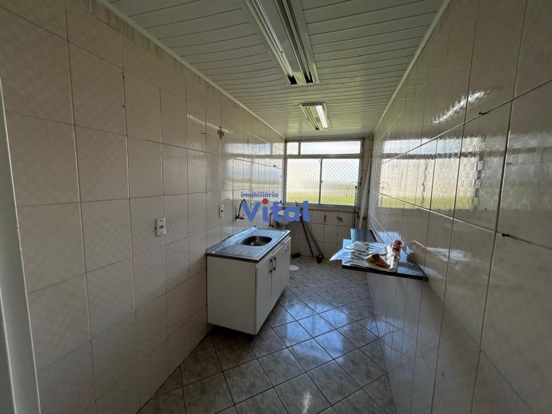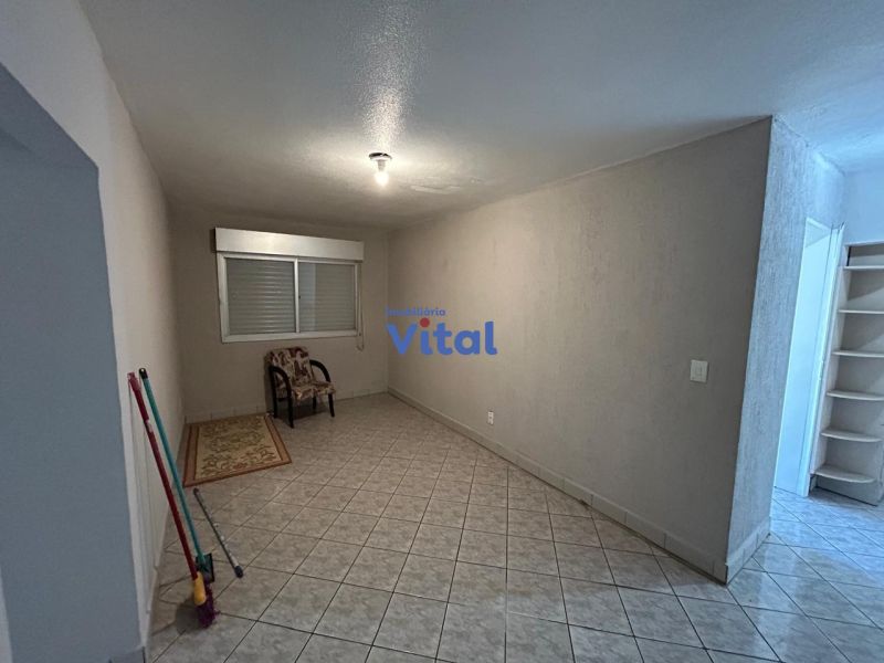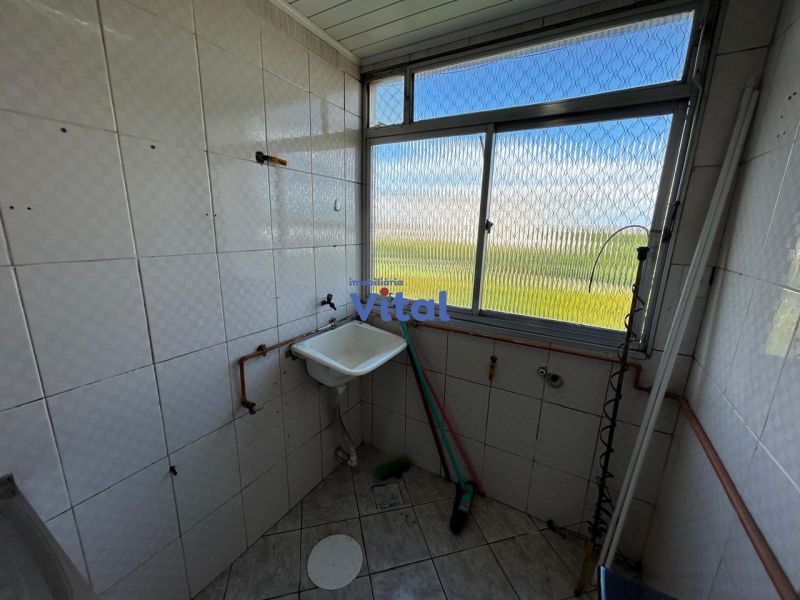 Apartamento com dois dormitórios, um banheiro, sala, cozinha e área de serviço (sem garagem para carro).