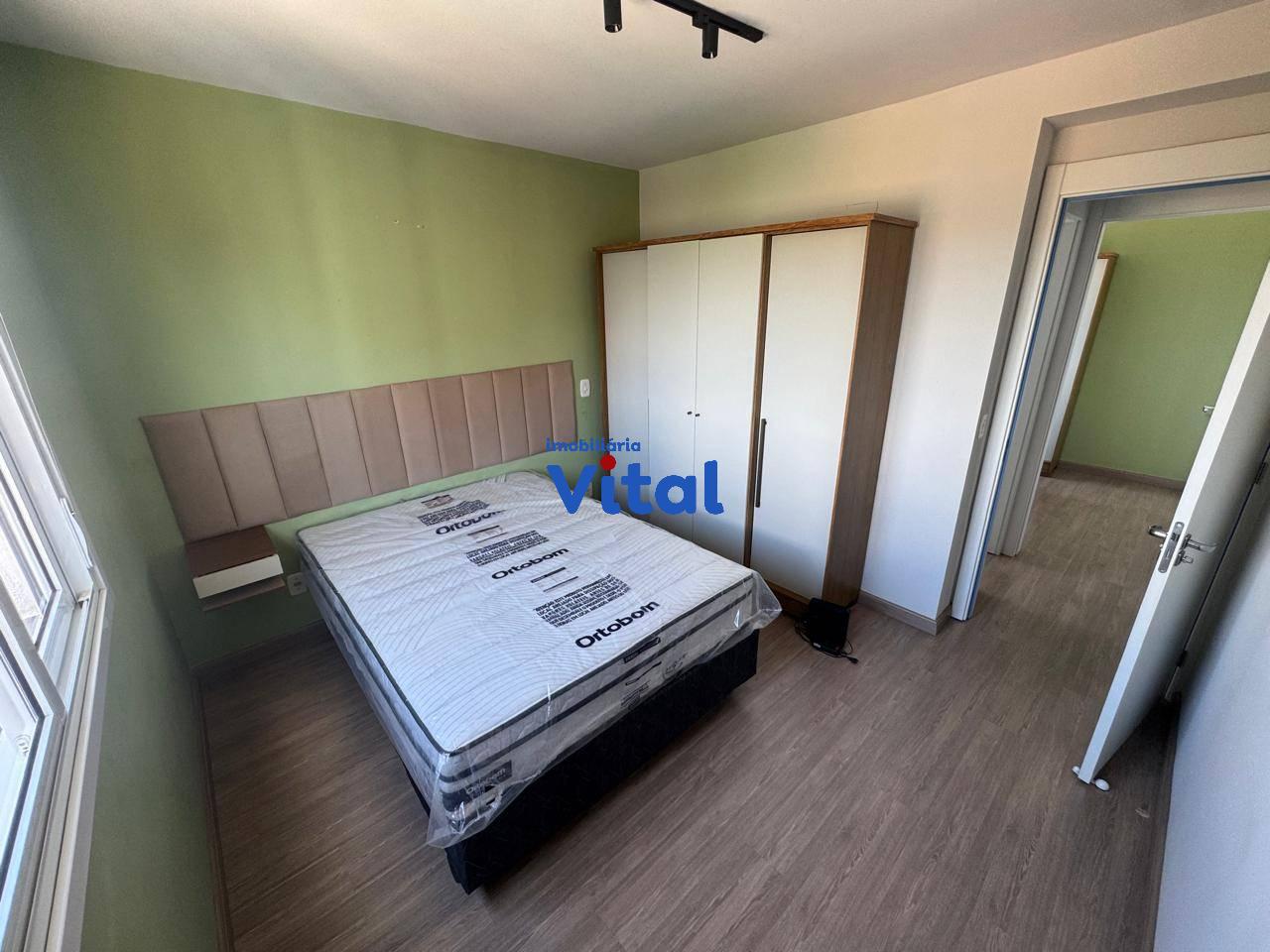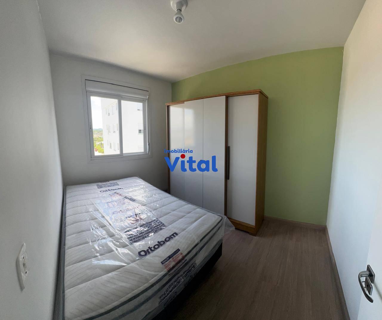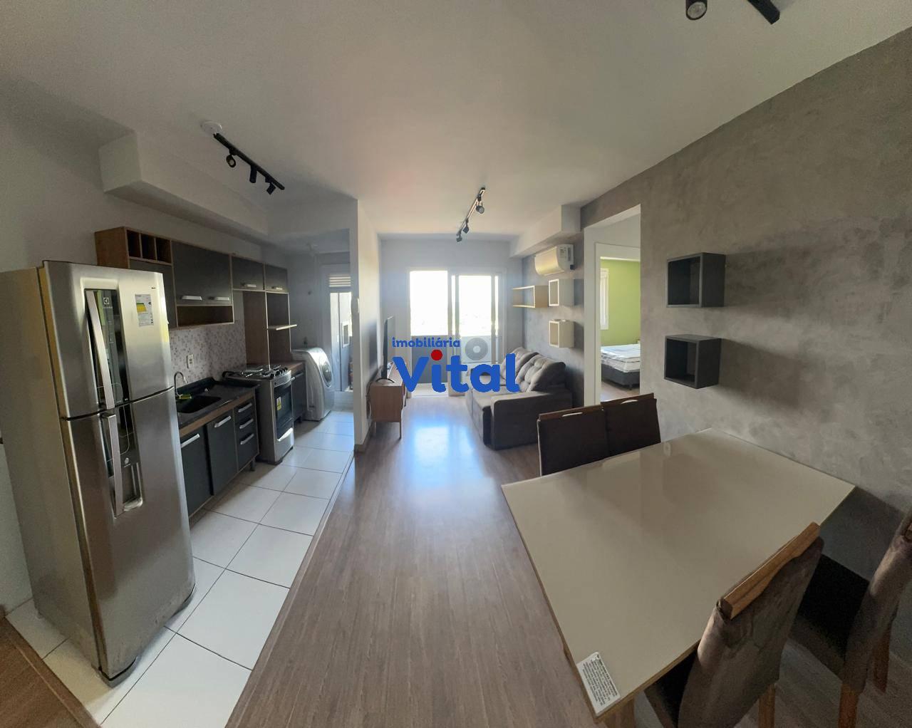 Excelente apartamento mobiliado com dois dormitórios, sala de estar/jantar, cozinha modulada, banheiro social e box coberto para o carro. Ficam no imóvel todos os móveis e eletrodomésticos que aparecem nas fotos do anuncio. Condomínio possui portaria 24h, salão de festas e playground.
