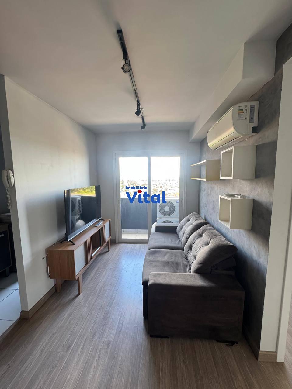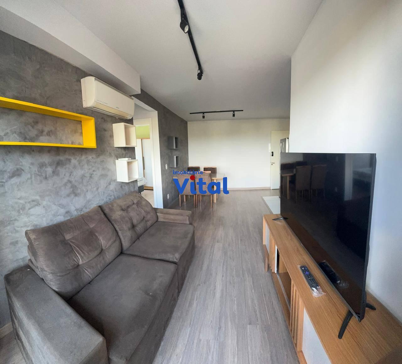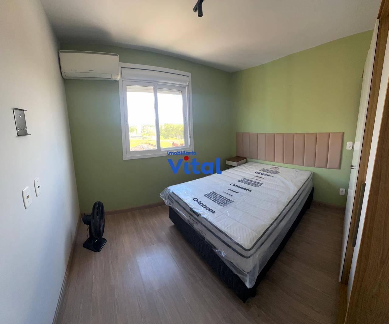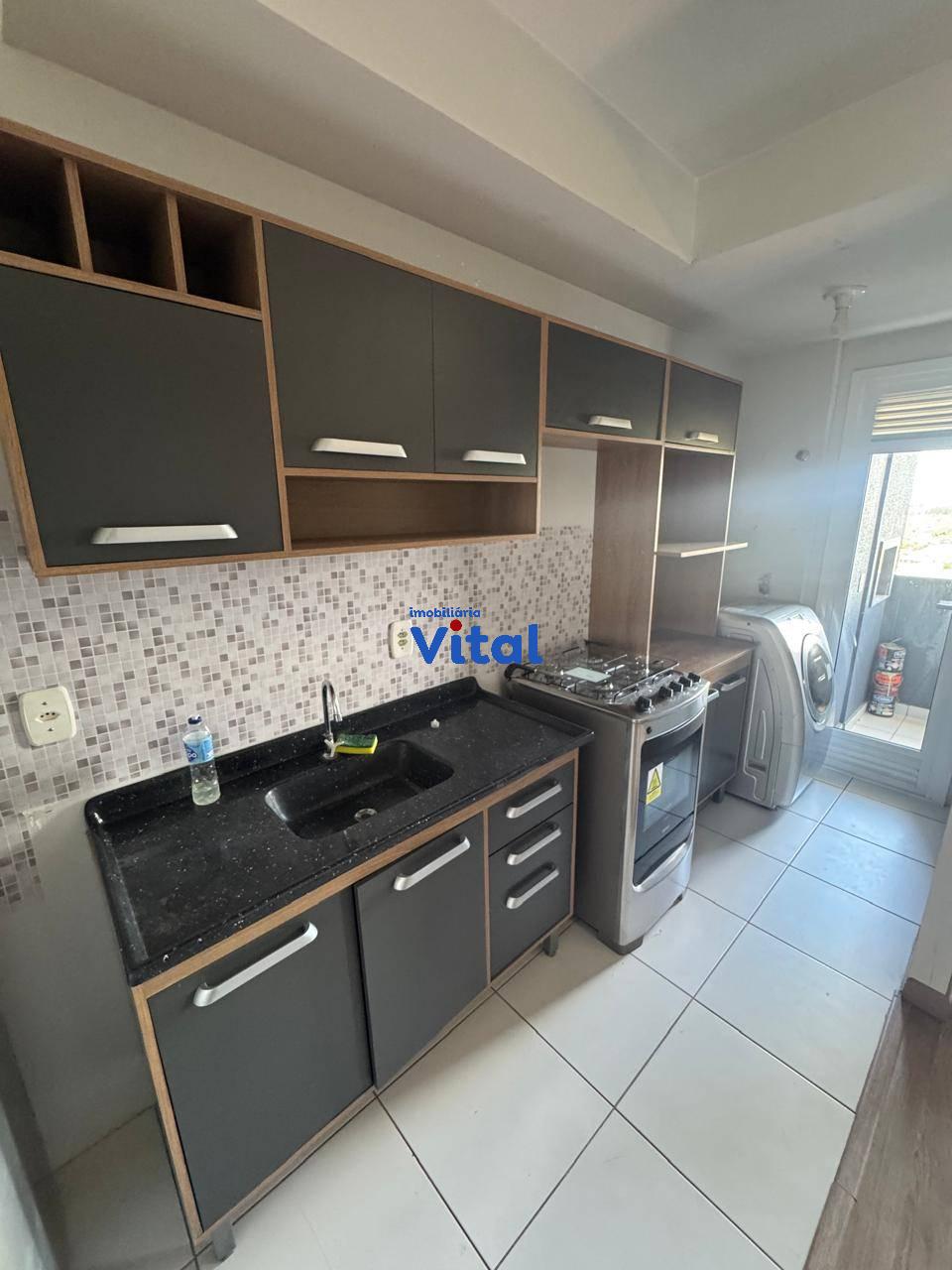 Excelente apartamento mobiliado com dois dormitórios, sala de estar/jantar, cozinha modulada, banheiro social e box coberto para o carro. Ficam no imóvel todos os móveis e eletrodomésticos que aparecem nas fotos do anuncio. Condomínio possui portaria 24h, salão de festas e playground.