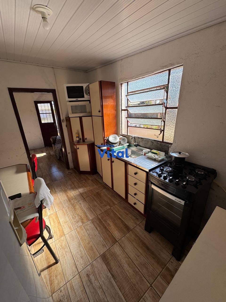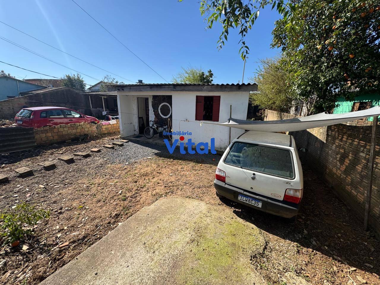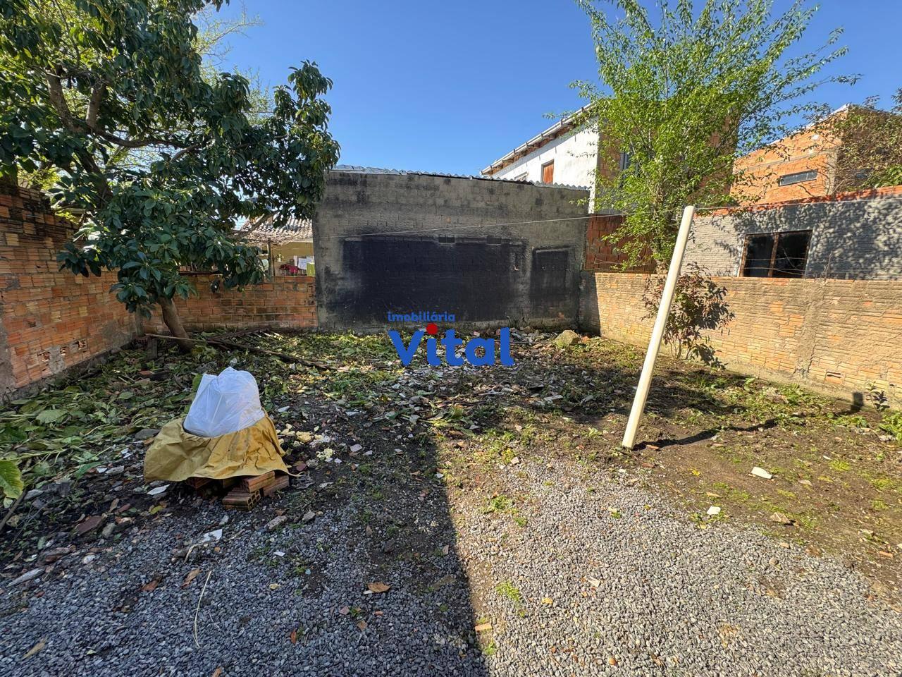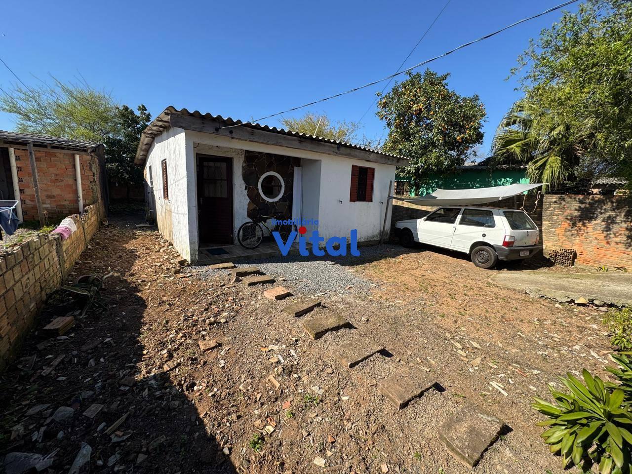Terreno de 255m² com casa de alvenaria. A casa possui dois dormitórios, sala de estar, cozinha, banheiro e área de serviço. Imóvel não aceita financiamento.