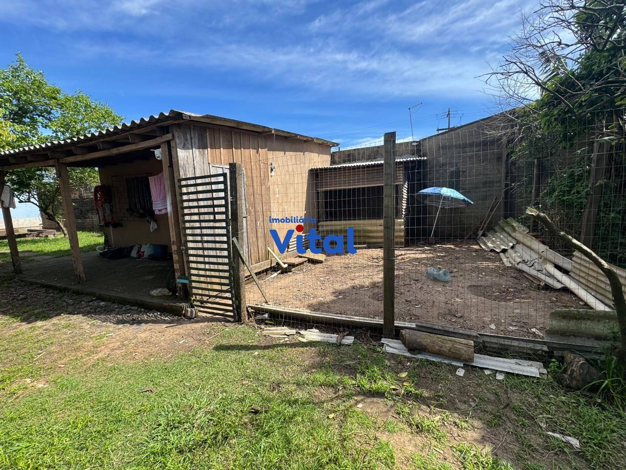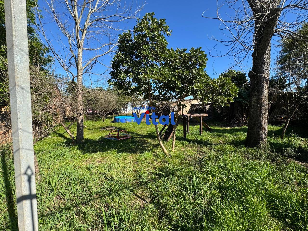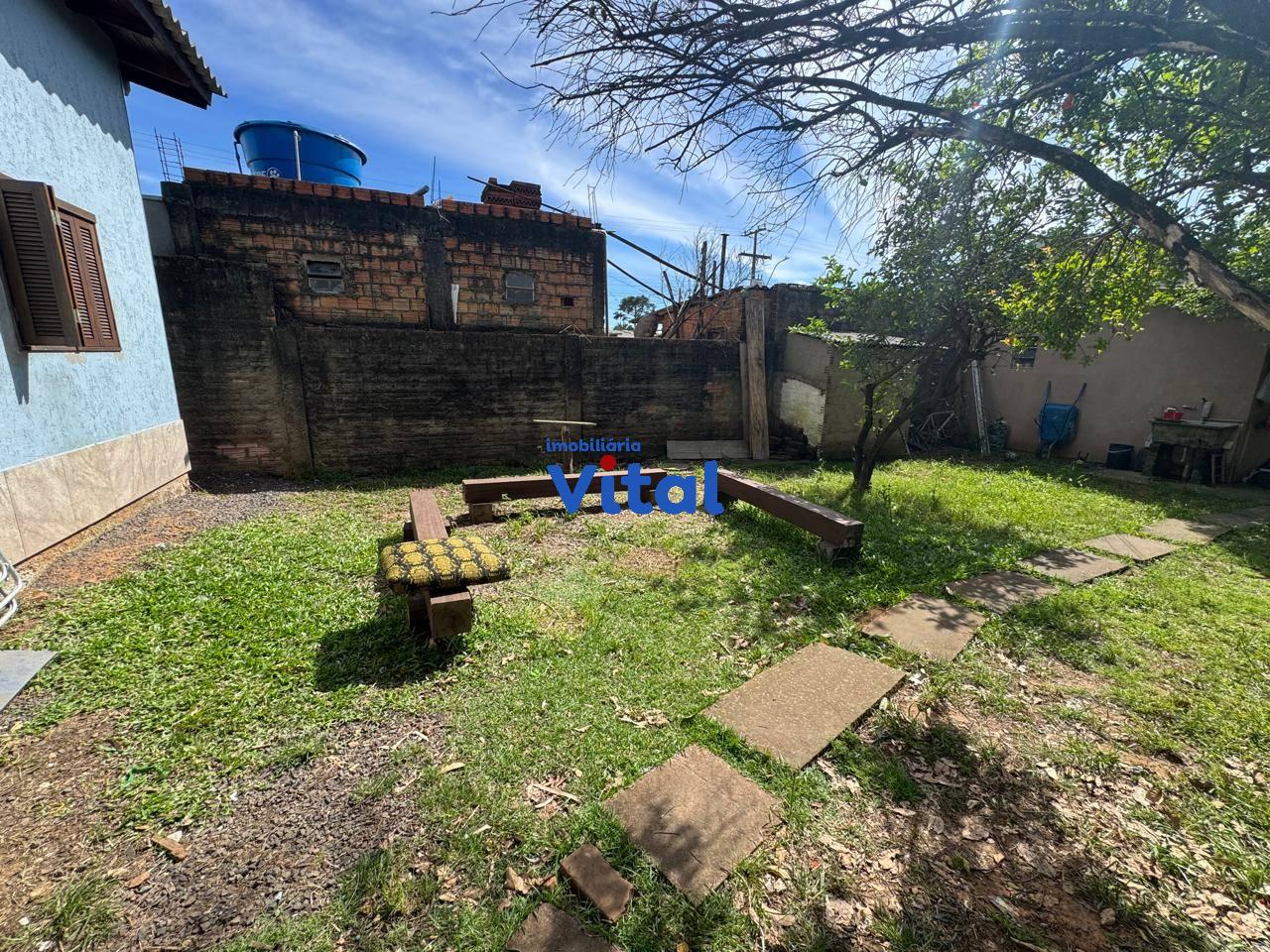 Excelente terreno com 841,81m², com frente para duas ruas. Há construído no terreno uma casa de alvenaria com dois dormitórios, sala de estar, cozinha, banheiro, área de serviço e cobertura para o carro. Nos fundos há também uma acessória com dispensa e outro banheiro.