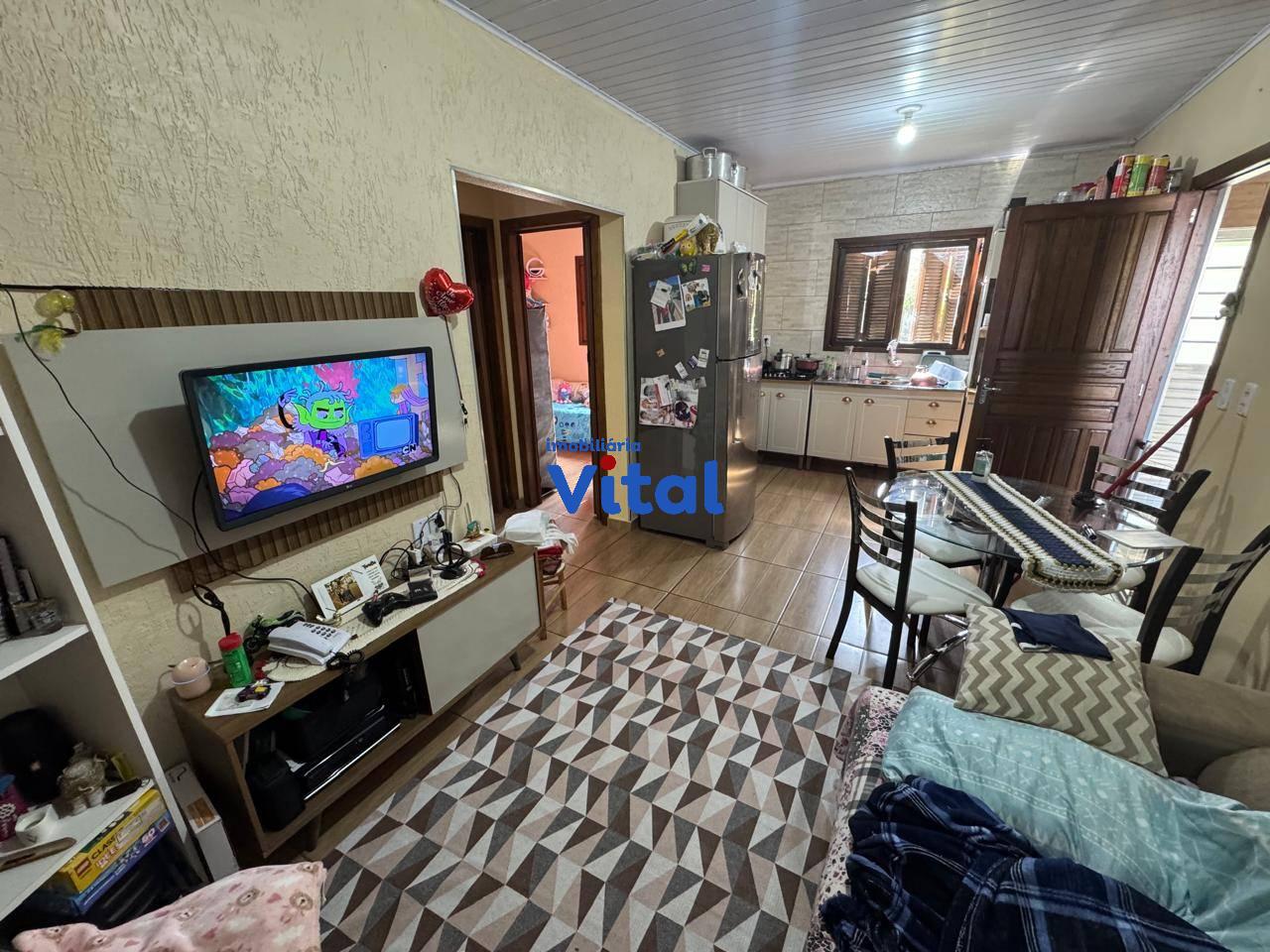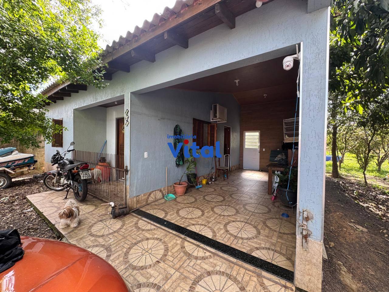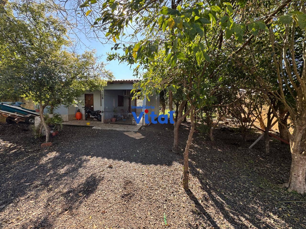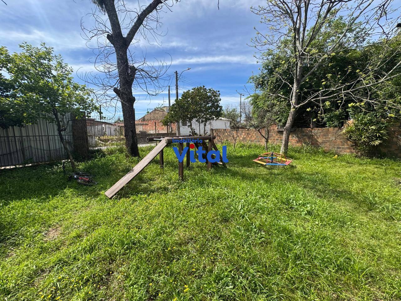 Excelente terreno com 841,81m², com frente para duas ruas. Há construído no terreno uma casa de alvenaria com dois dormitórios, sala de estar, cozinha, banheiro, área de serviço e cobertura para o carro. Nos fundos há também uma acessória com dispensa e outro banheiro.