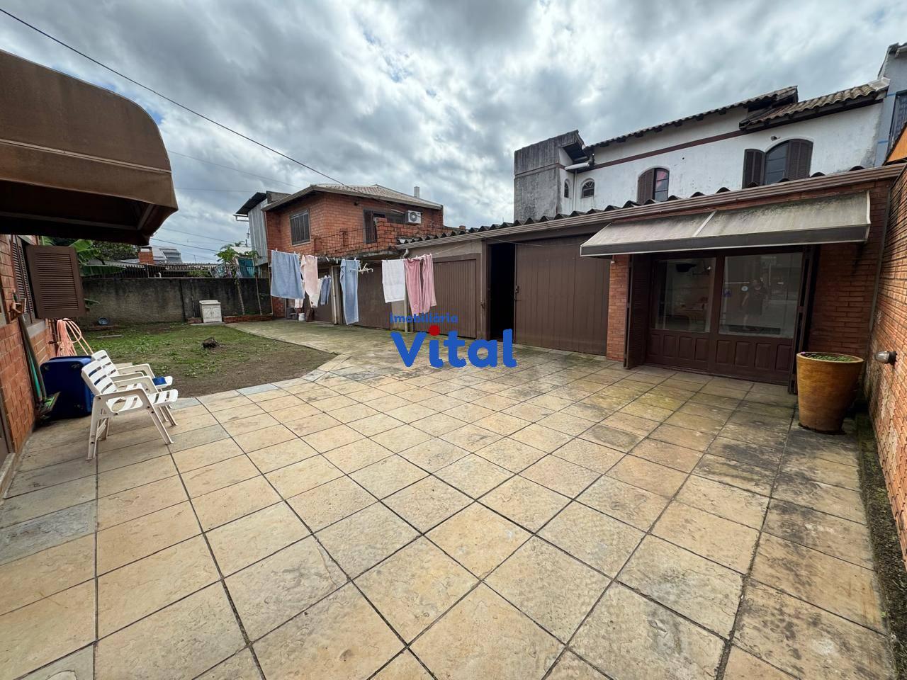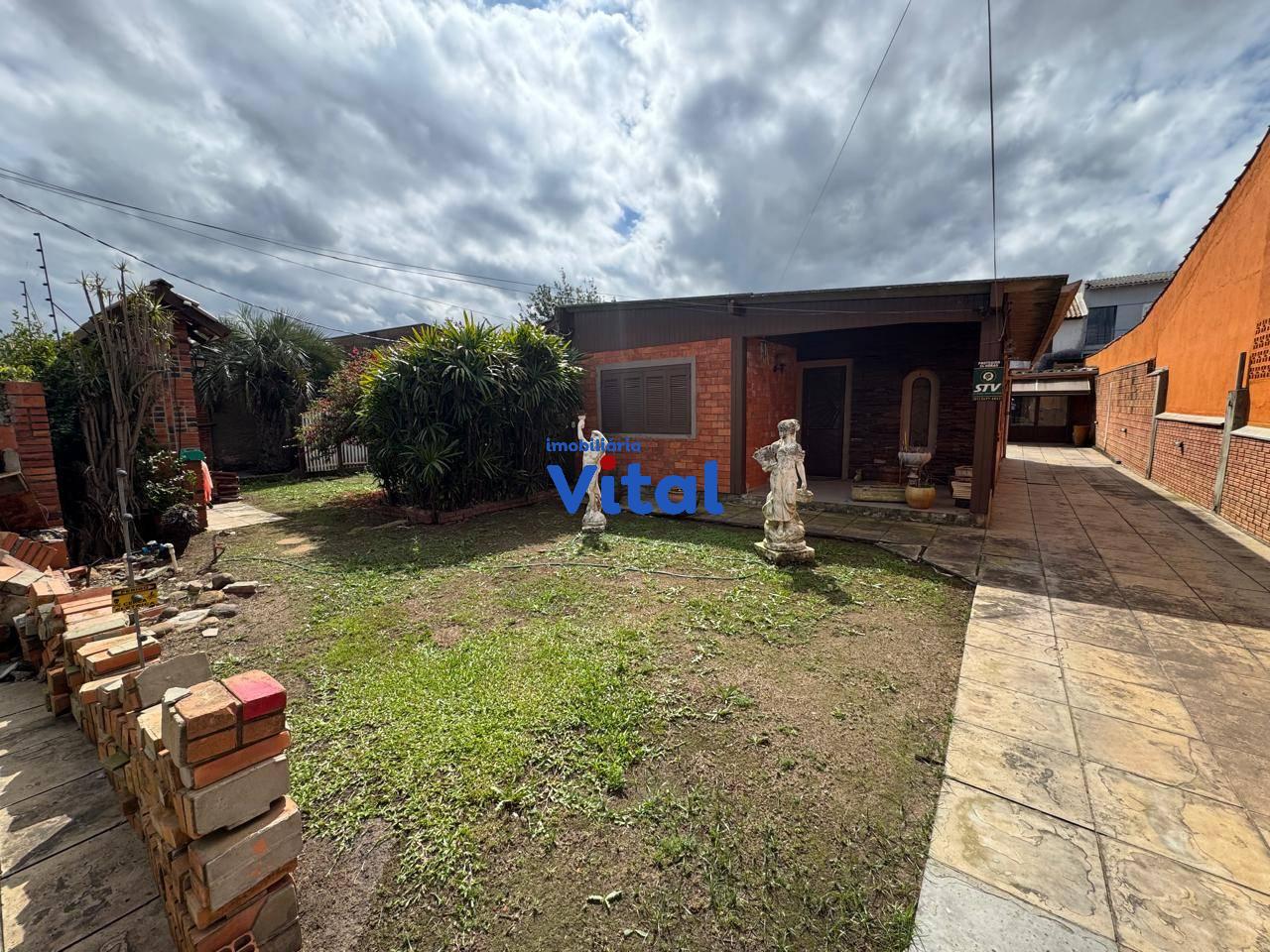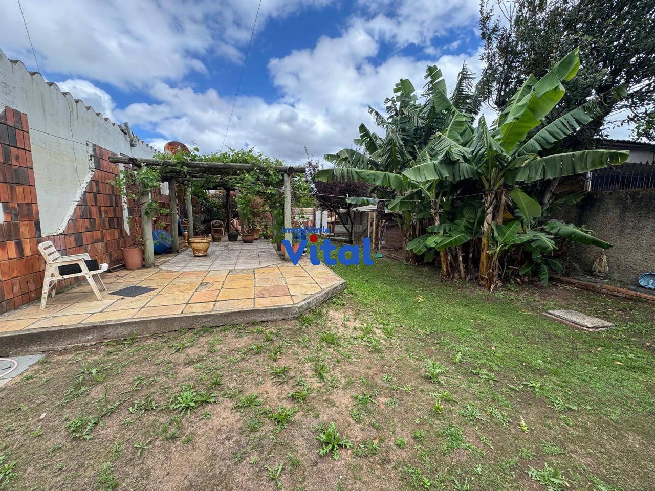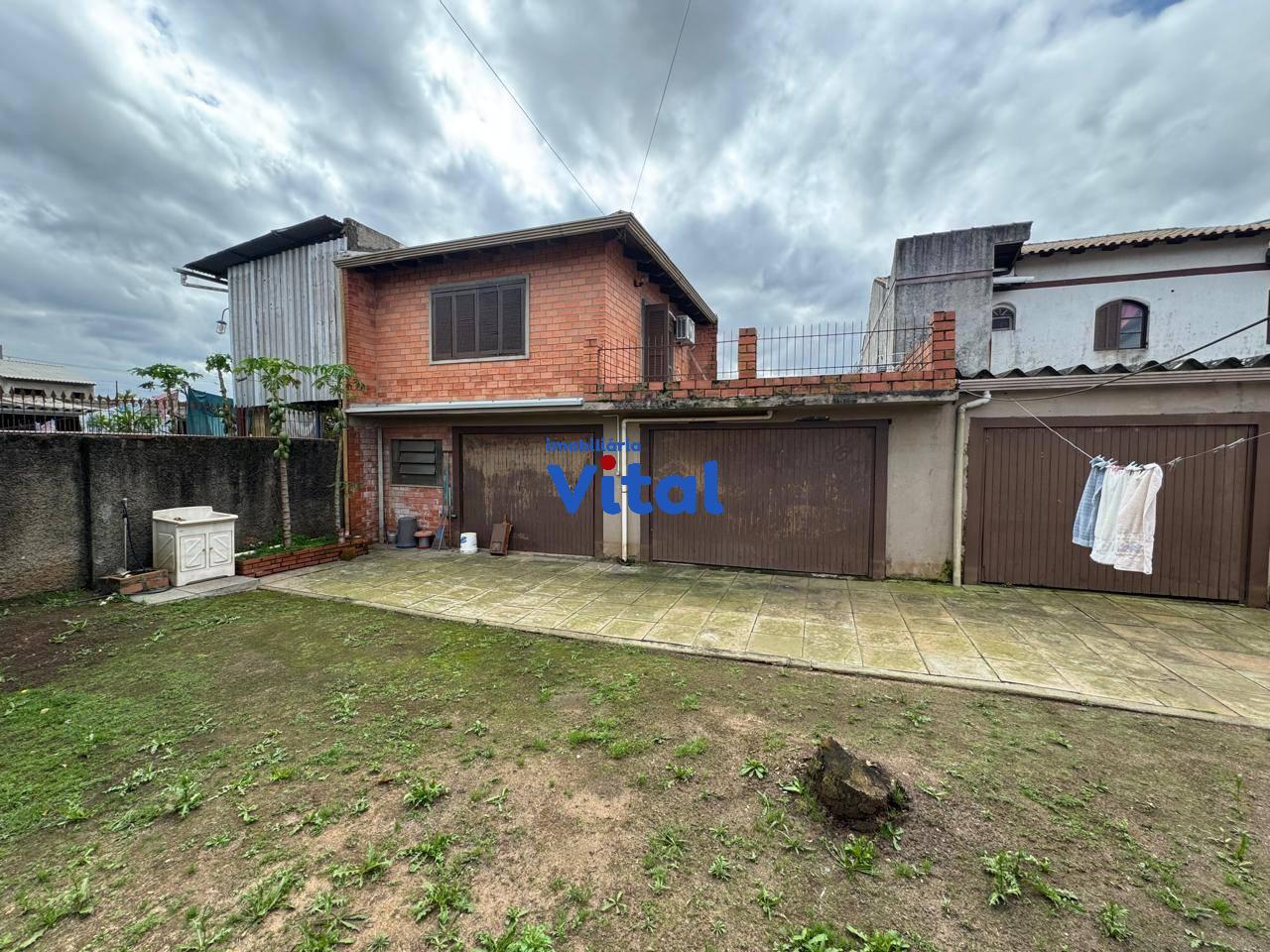 Terreno dom 660m² com casa de alvenaria. A casa possui dois dormitórios, sala de estar, banheiro social e área de serviço. Nos fundos há uma ampla garagem que comporta até 04 carros, churrasqueira, um lavabo e mais um quarto no andar superior com banheiro e terraço.