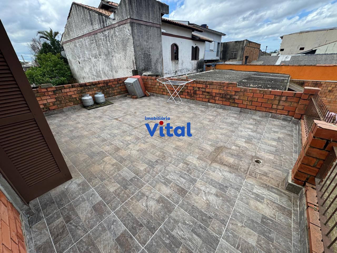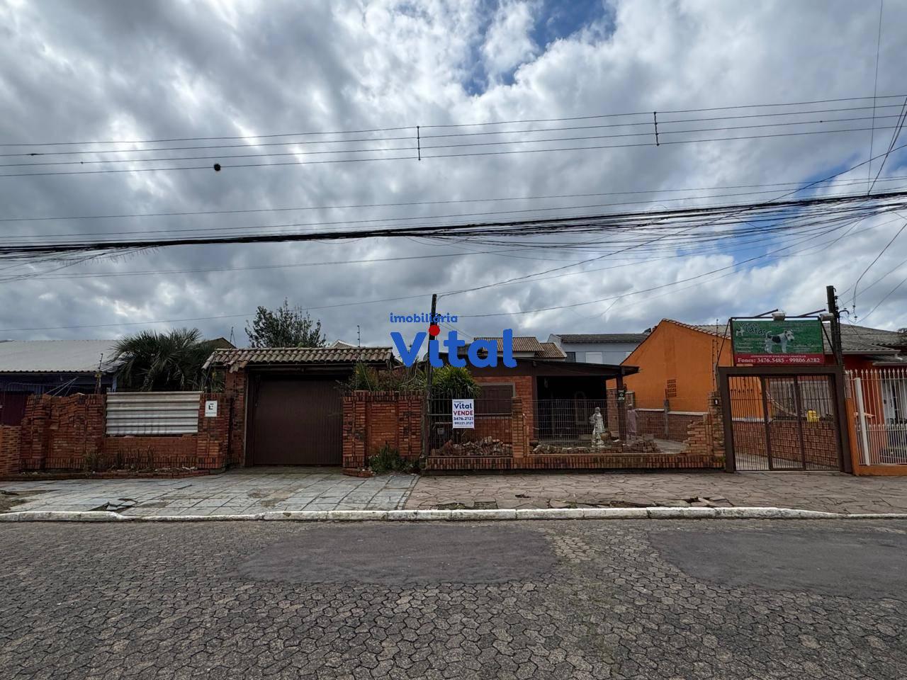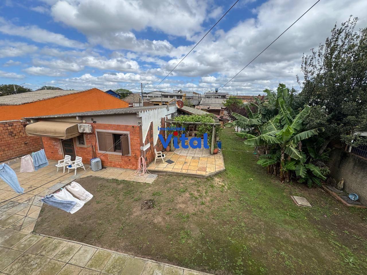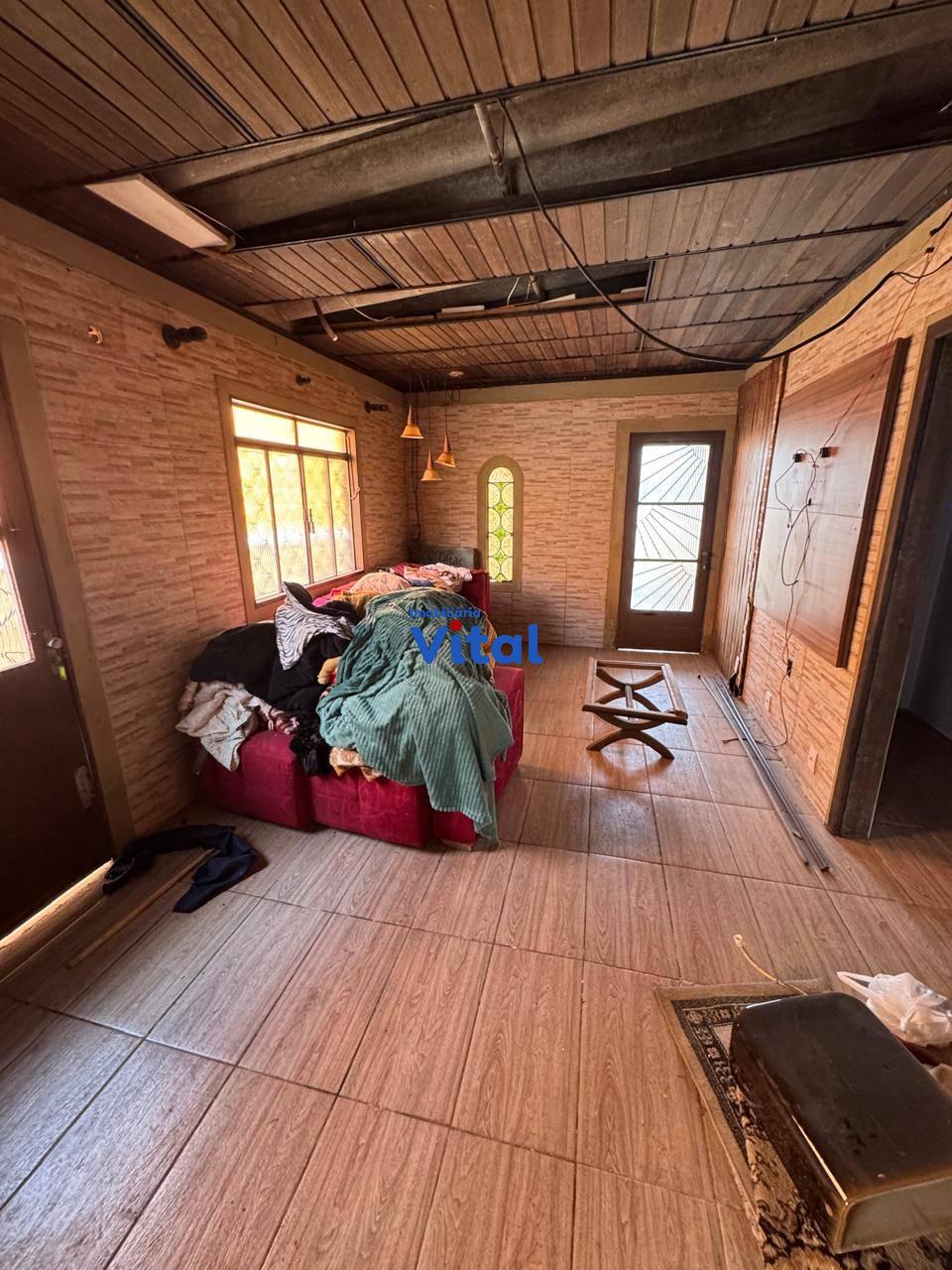 Terreno dom 660m² com casa de alvenaria. A casa possui dois dormitórios, sala de estar, banheiro social e área de serviço. Nos fundos há uma ampla garagem que comporta até 04 carros, churrasqueira, um lavabo e mais um quarto no andar superior com banheiro e terraço.