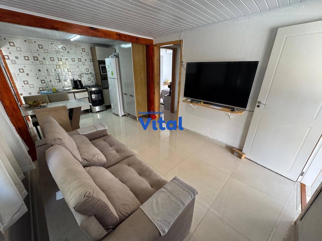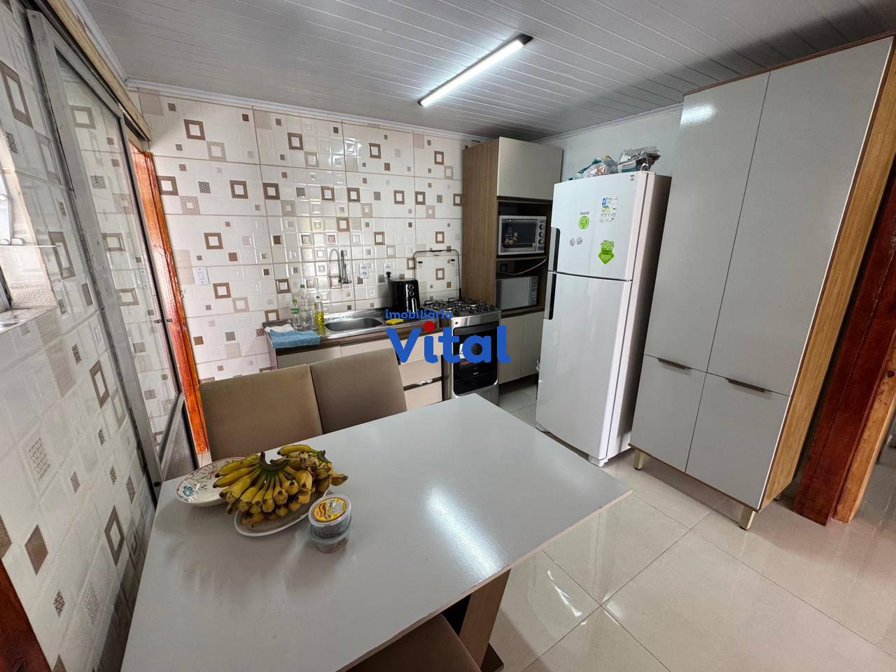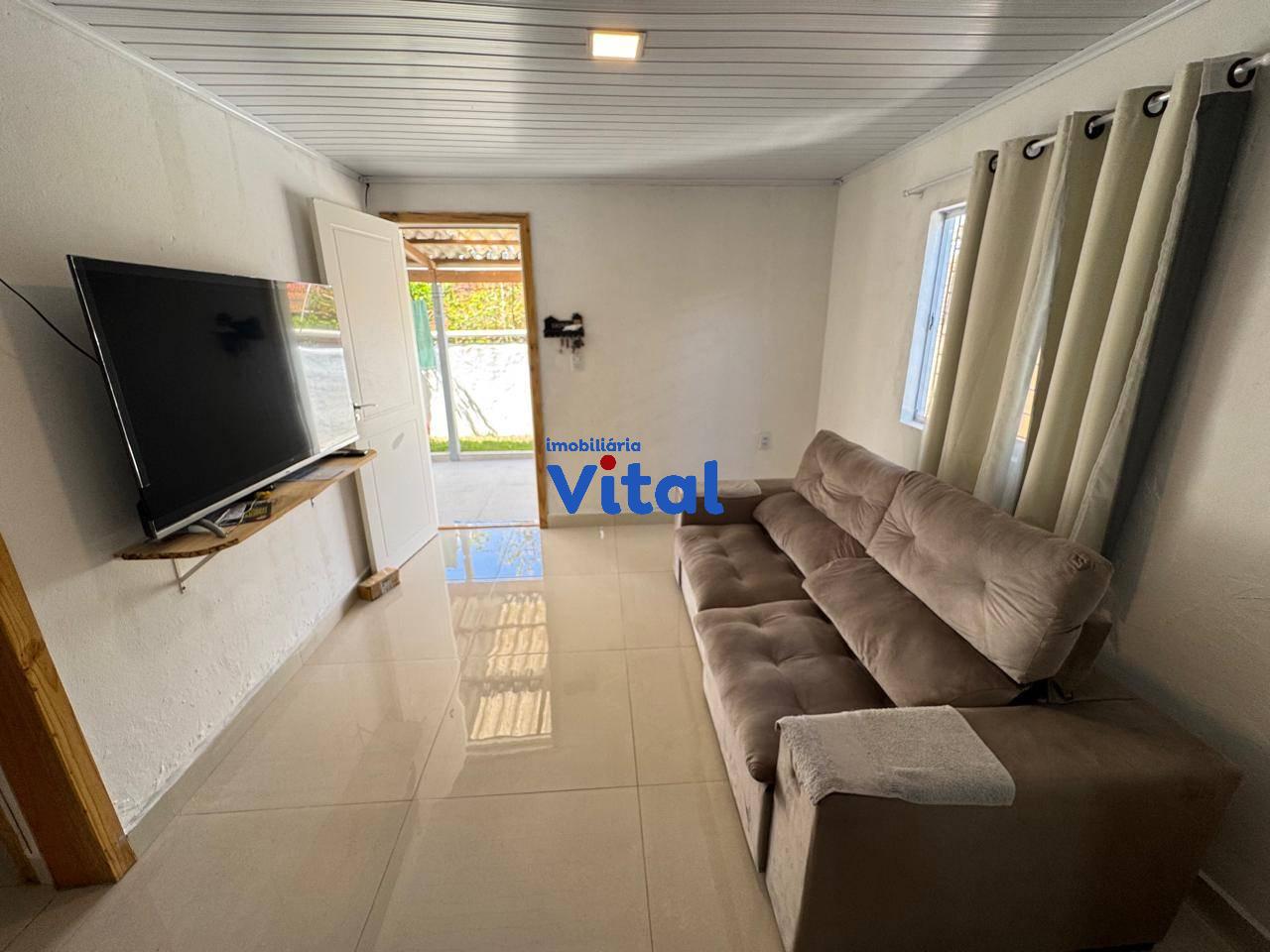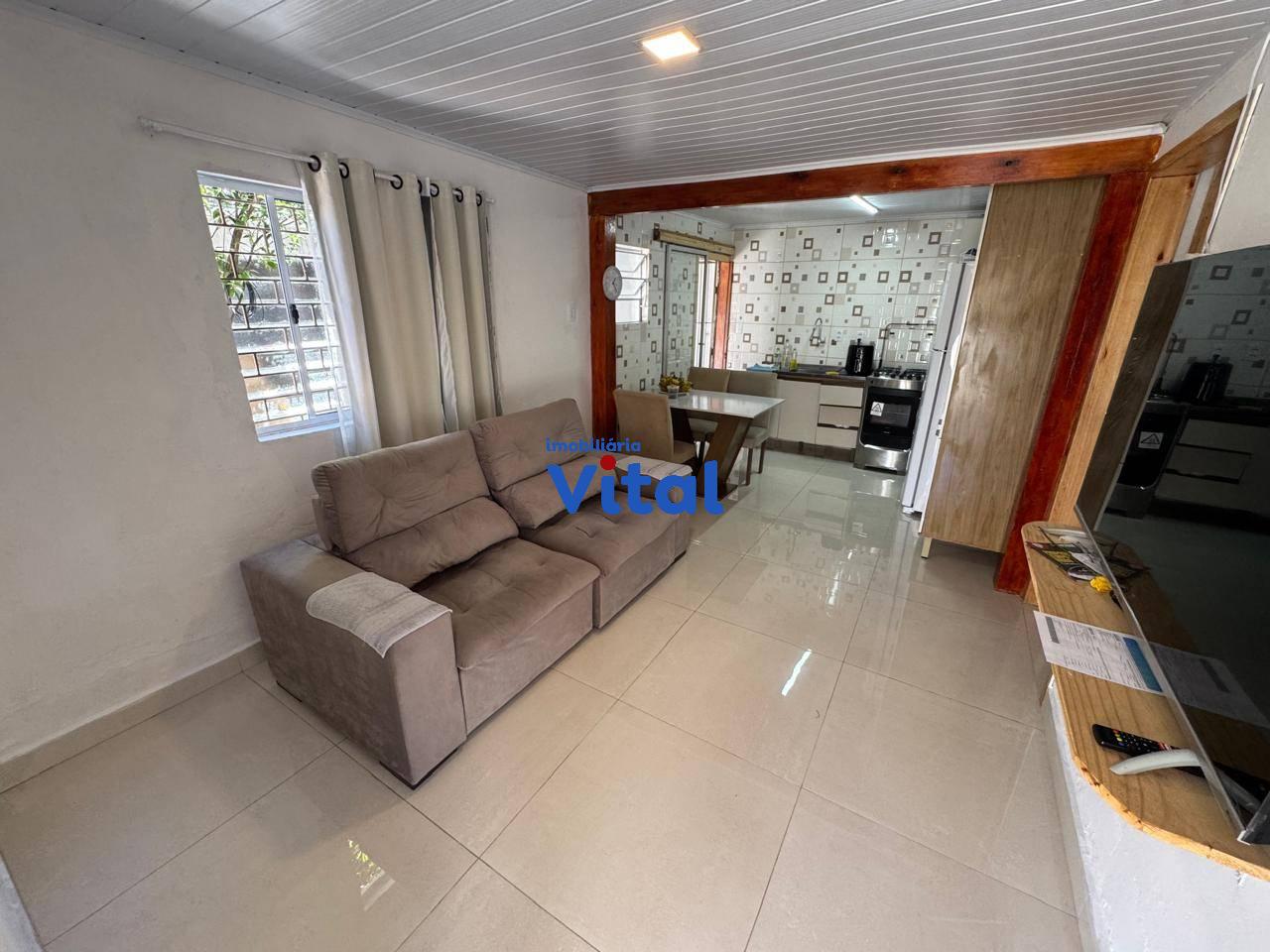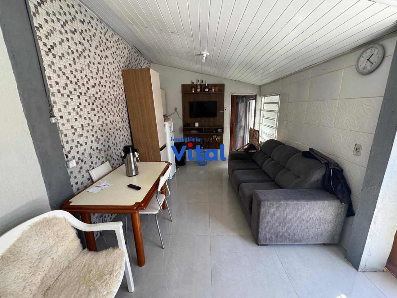 Casa de alvenaria com dois dormitórios, sala de estar, cozinha, banheiro social, área de serviço, garagem para dois carros e uma piscina. Há ainda uma área gourmet nos fundos com churrasqueira, banheiro e mais um dormitórios. Terreno de 400m² (10m x 40m).