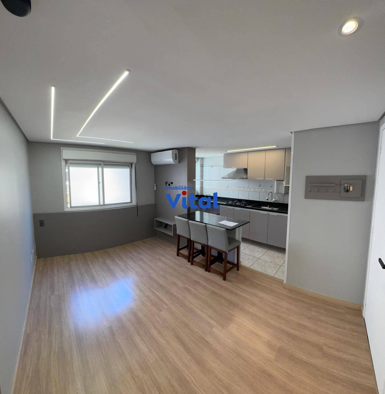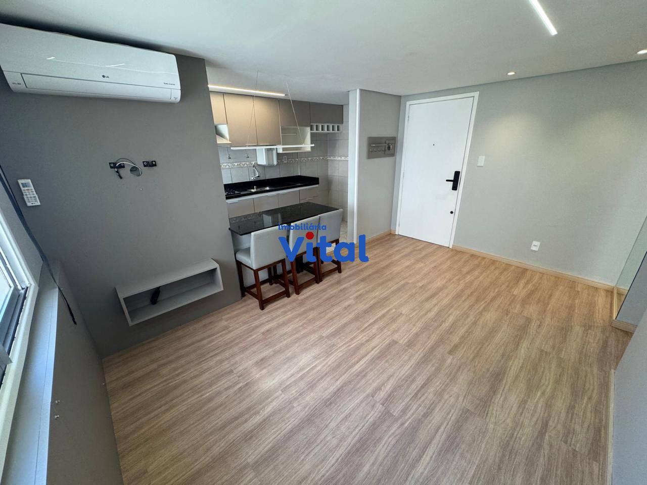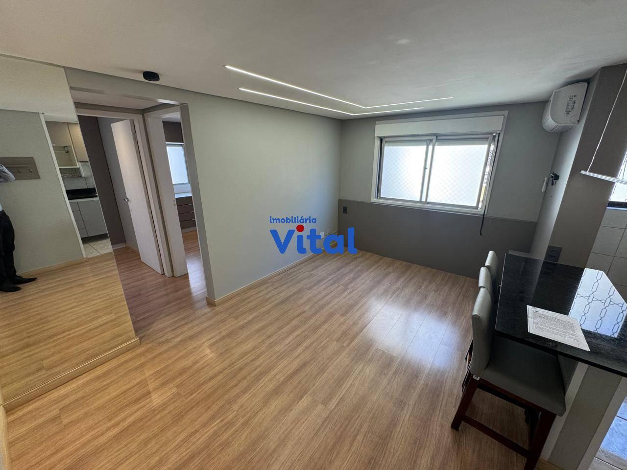 Excelente apartamento semimobiliado com dois dormitórios, sala de estar / jantar, cozinha integrada com área de serviço e box de garagem descoberto para o carro. Ficam no imóvel todos os móveis que aparecem nas fotos, ar condicionado split e chuveiro. Condomínio conta com portaria 24h, salão de festas, quiosques com churrasqueira, playground e quadra esportiva.