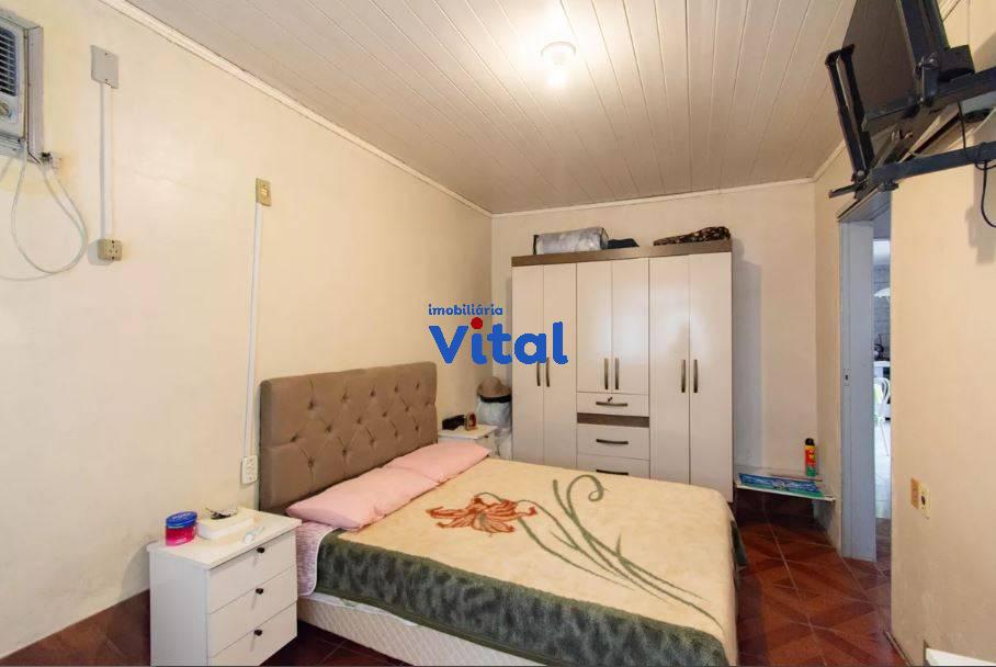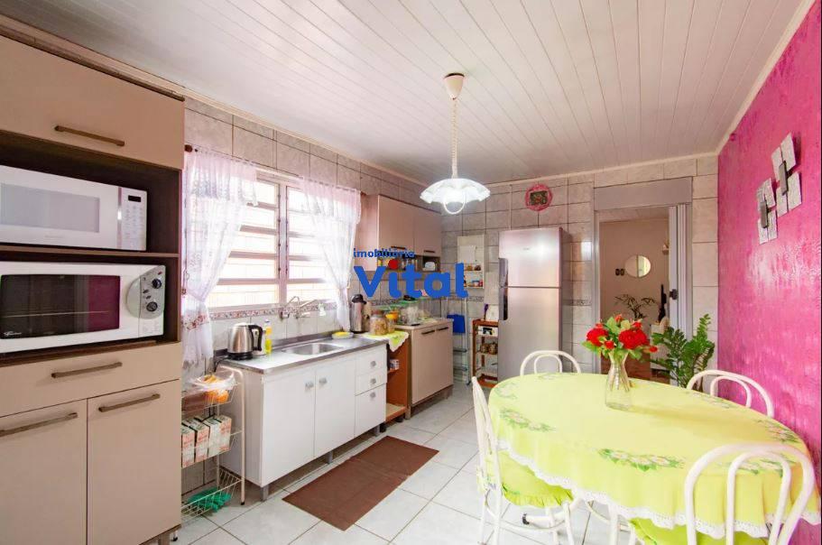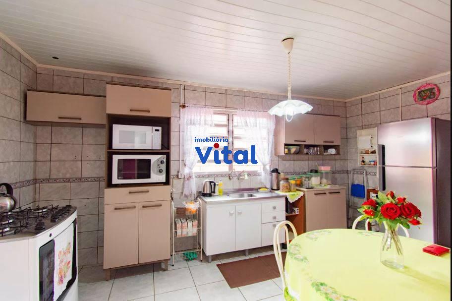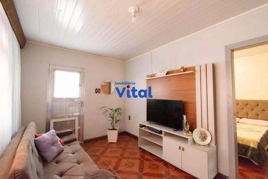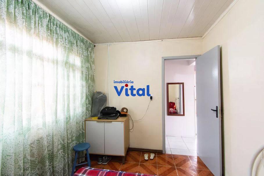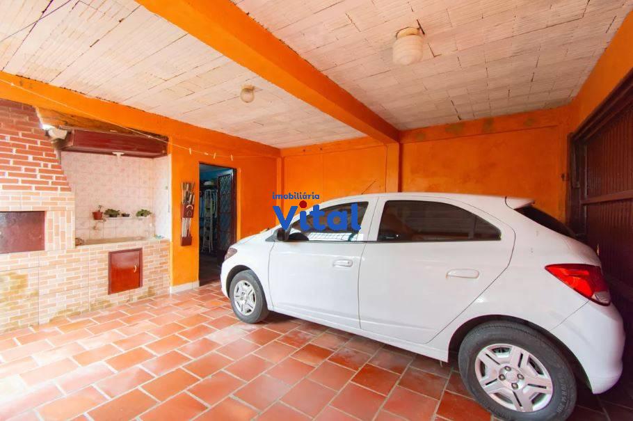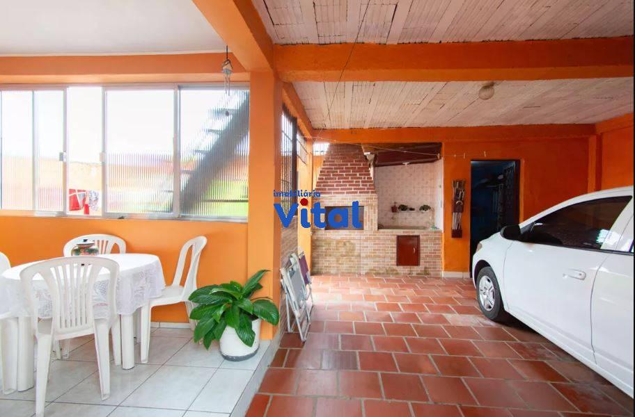 Casa de alvenaria com dois dormitórios, sala de estar, cozinha, banheiro social, área de serviço, terraço e garagem com churrasqueira. Nos fundos há uma segunda casa com um dormitório, sala, cozinha, banheiro e área de serviço. Terreno possui 360m² (12m x 30m).
