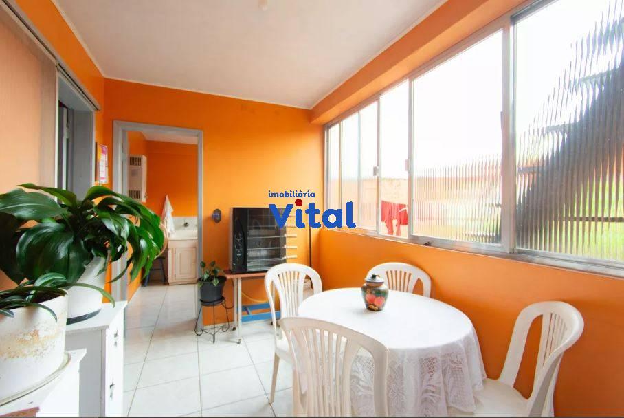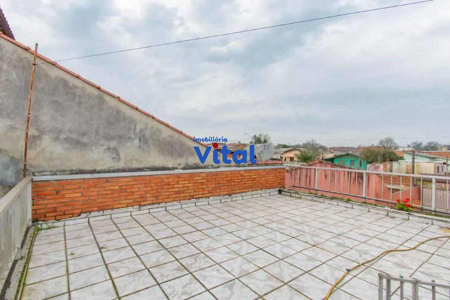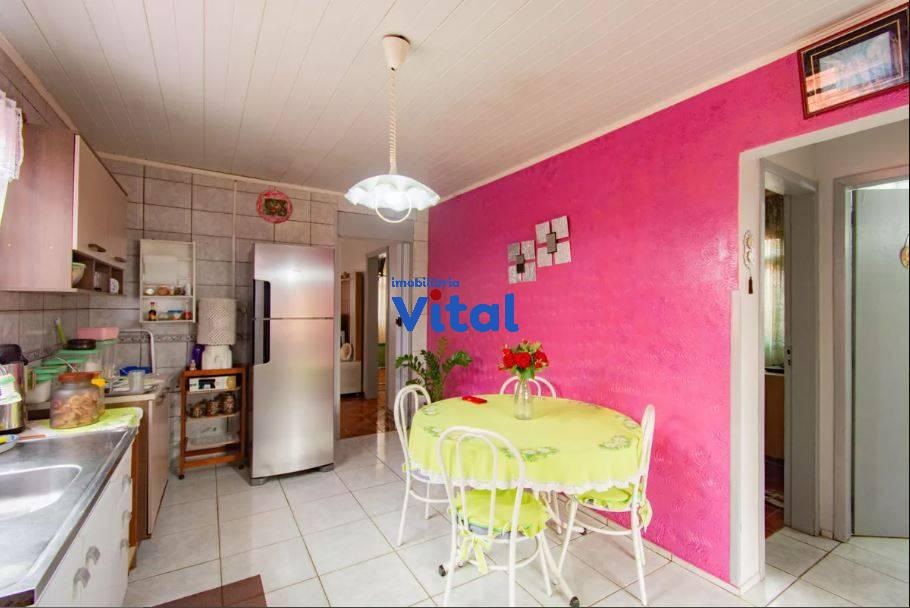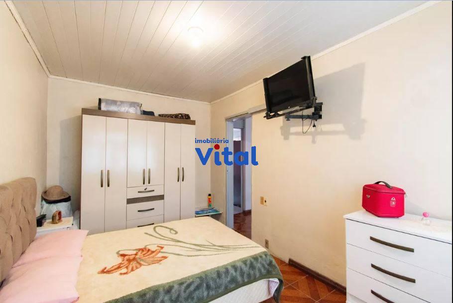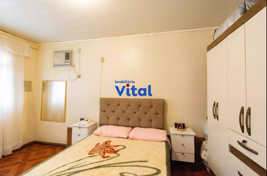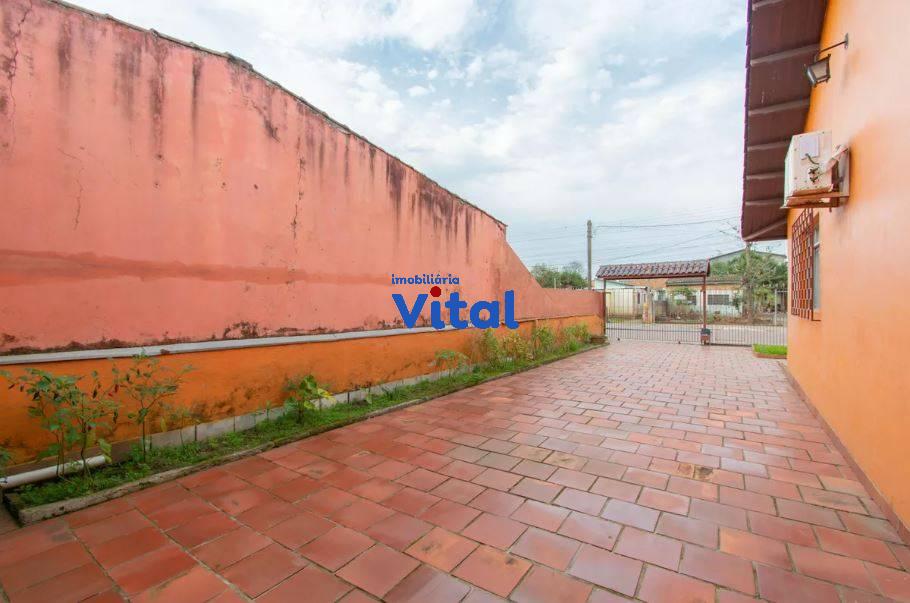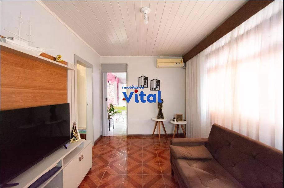 Casa de alvenaria com dois dormitórios, sala de estar, cozinha, banheiro social, área de serviço, terraço e garagem com churrasqueira. Nos fundos há uma segunda casa com um dormitório, sala, cozinha, banheiro e área de serviço. Terreno possui 360m² (12m x 30m).