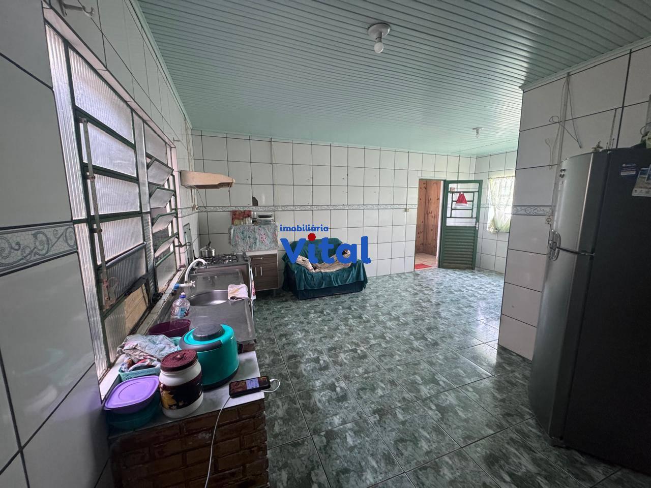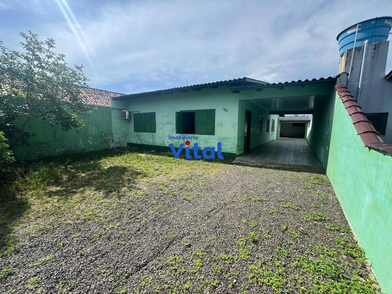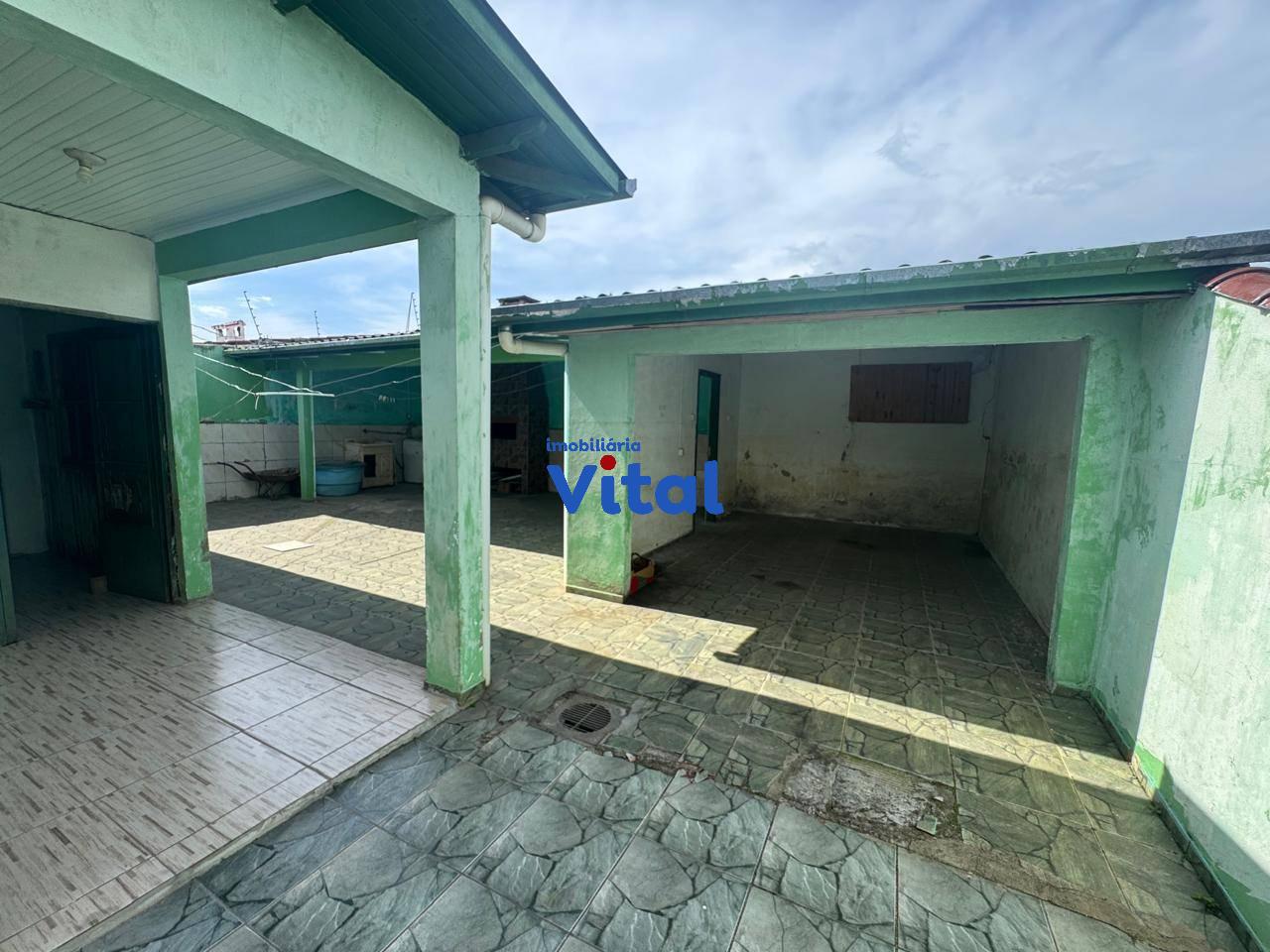 Ampla casa de alvenaria com três dormitórios, sala de estar, cozinha, dois banheiros, área de serviço, quiosque nos fundos com churrasqueira e garagem para 2 carros. Terreno possui 440m² (11m x 40m).