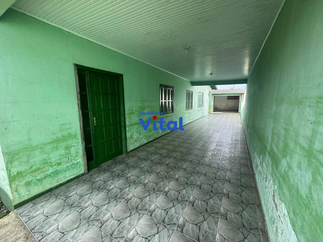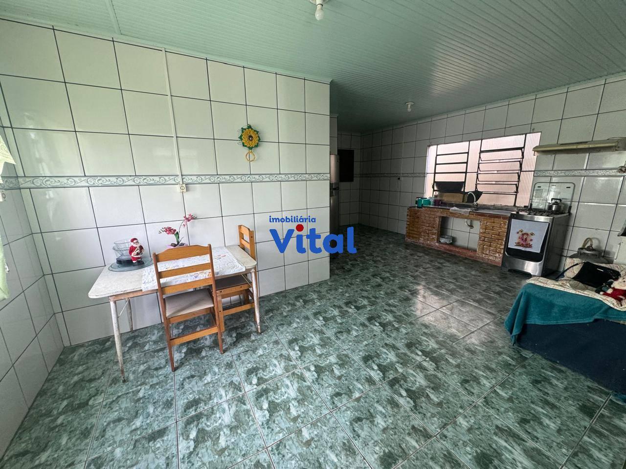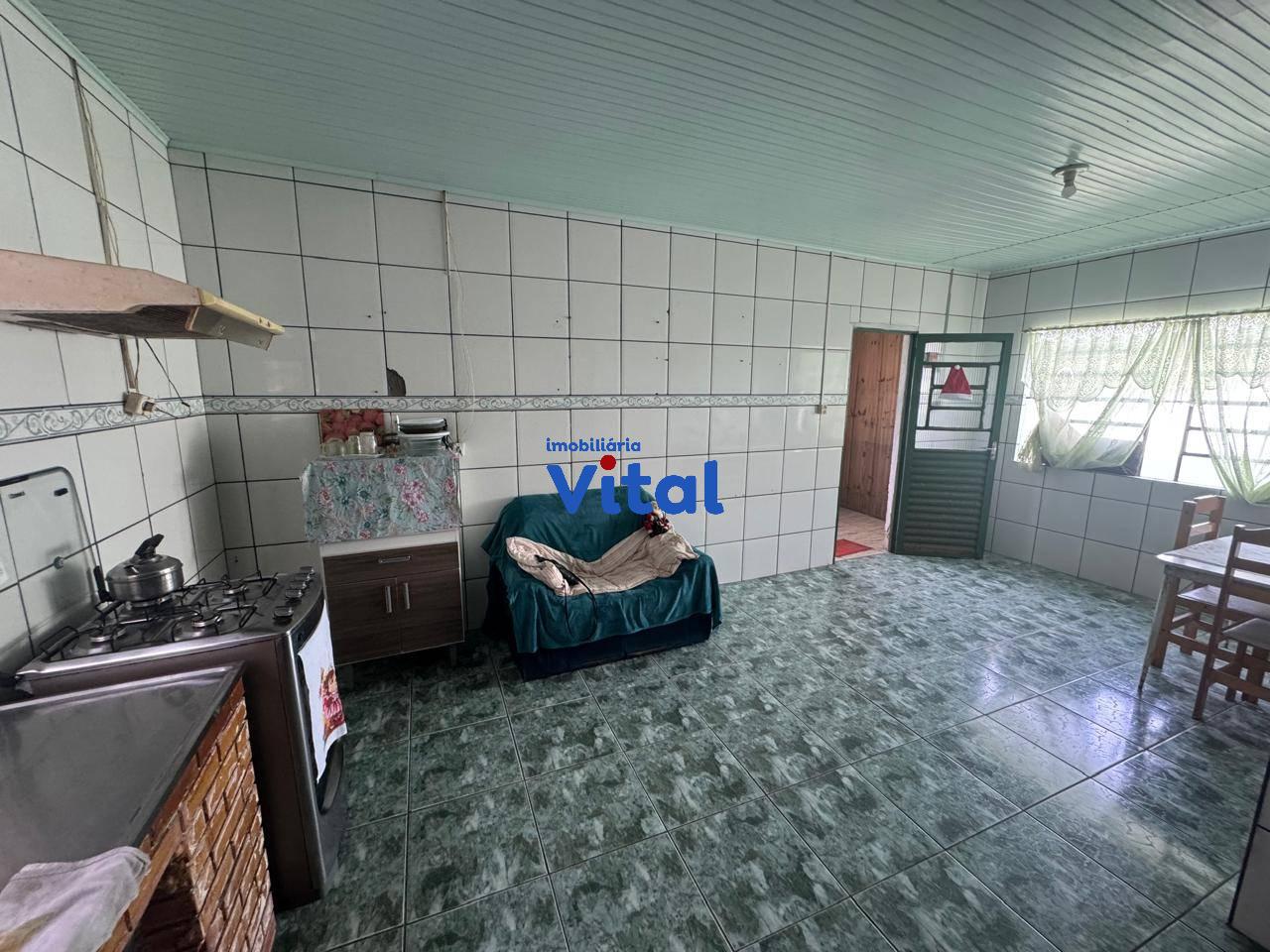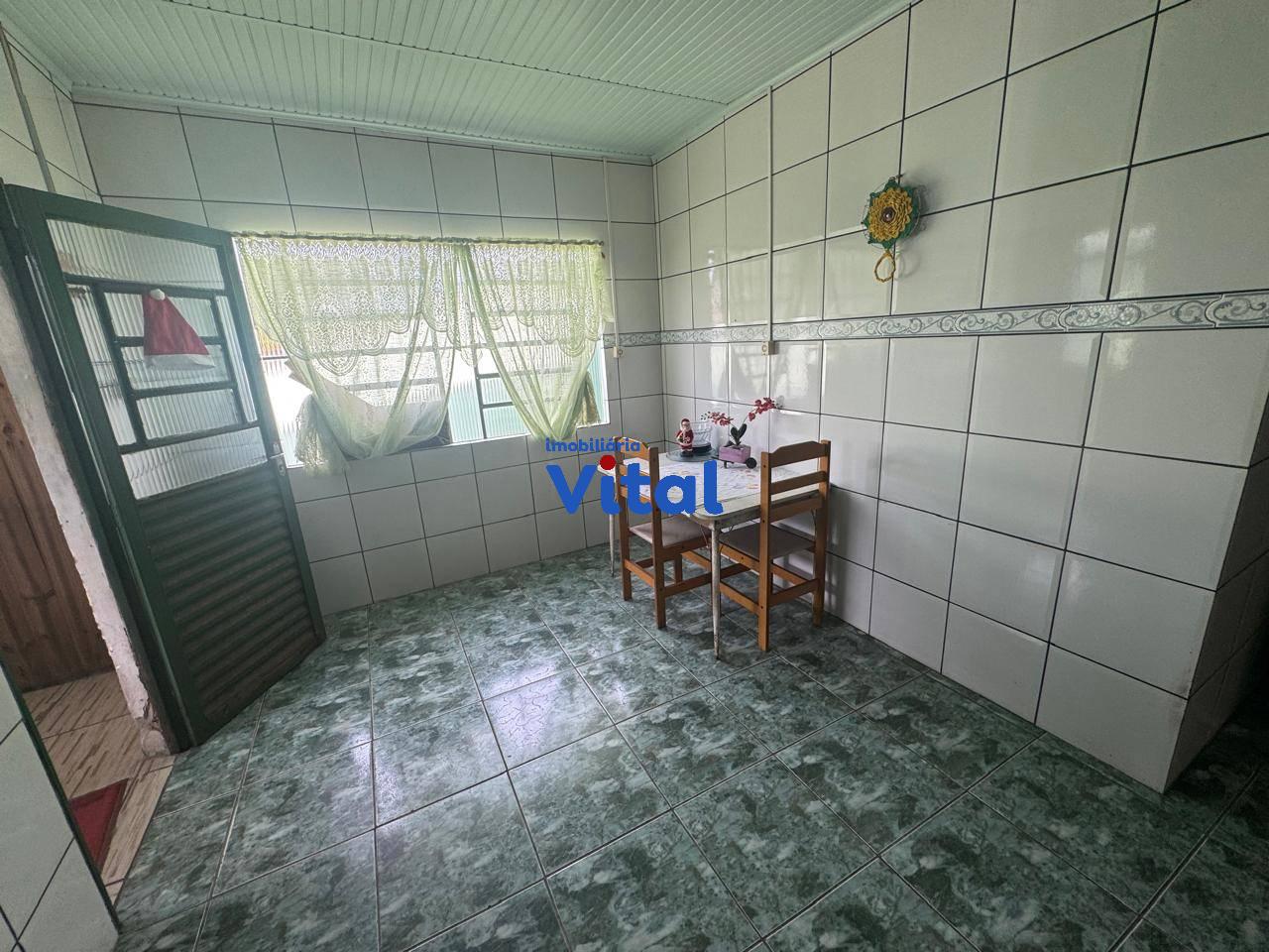 Ampla casa de alvenaria com três dormitórios, sala de estar, cozinha, dois banheiros, área de serviço, quiosque nos fundos com churrasqueira e garagem para 2 carros. Terreno possui 440m² (11m x 40m).
