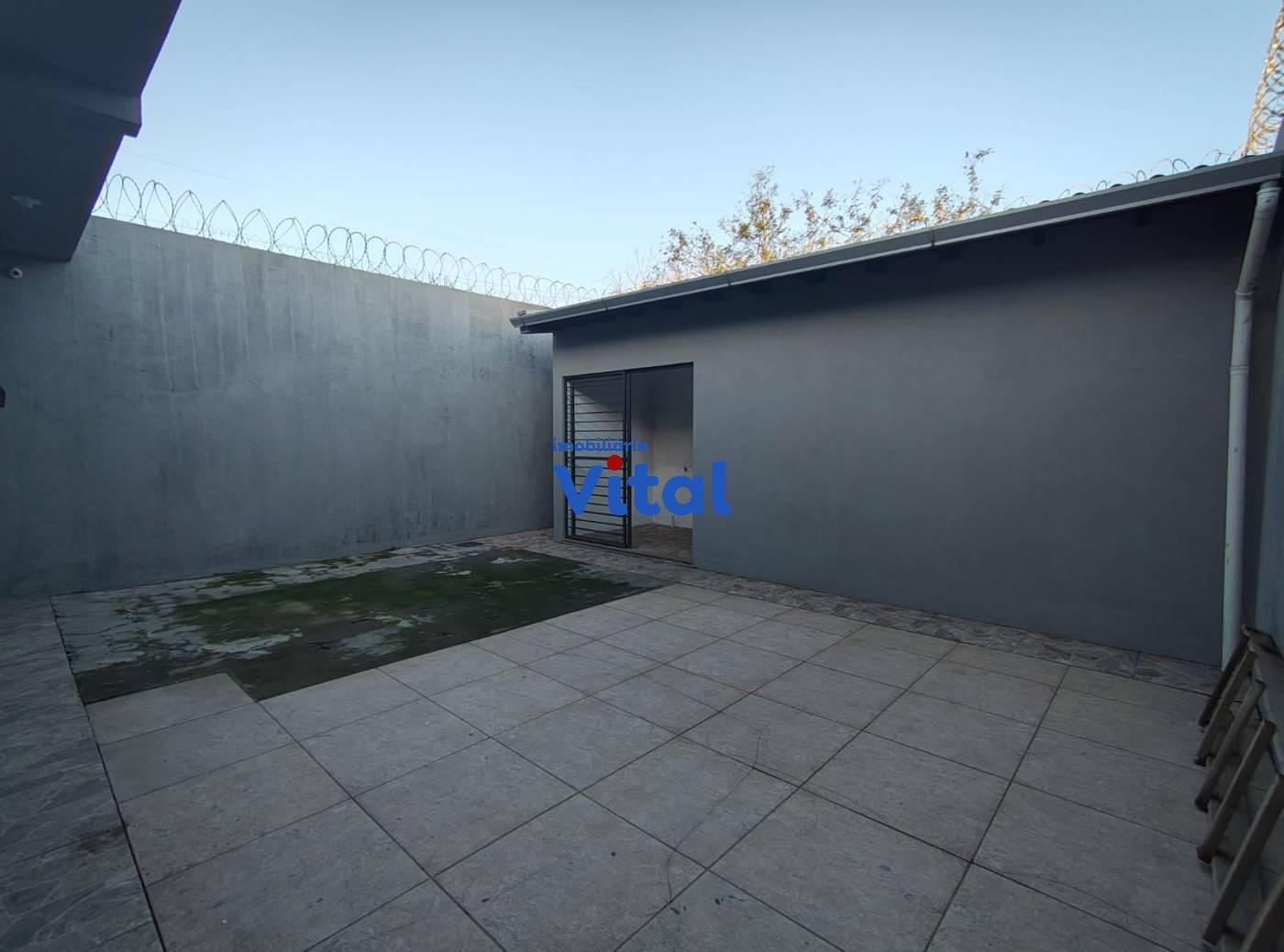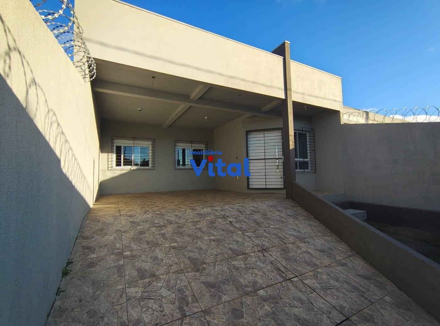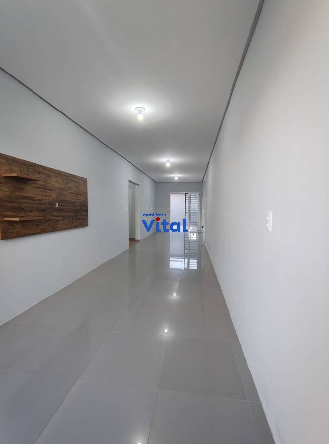 Casa de alvenaria com três dormitórios, ampla sala de estar e jantar, cozinha, banheiro social, área de serviço, depósito nos fundos e vaga para dois carros. Imóvel tem estrutura para construção de segundo pavimento.