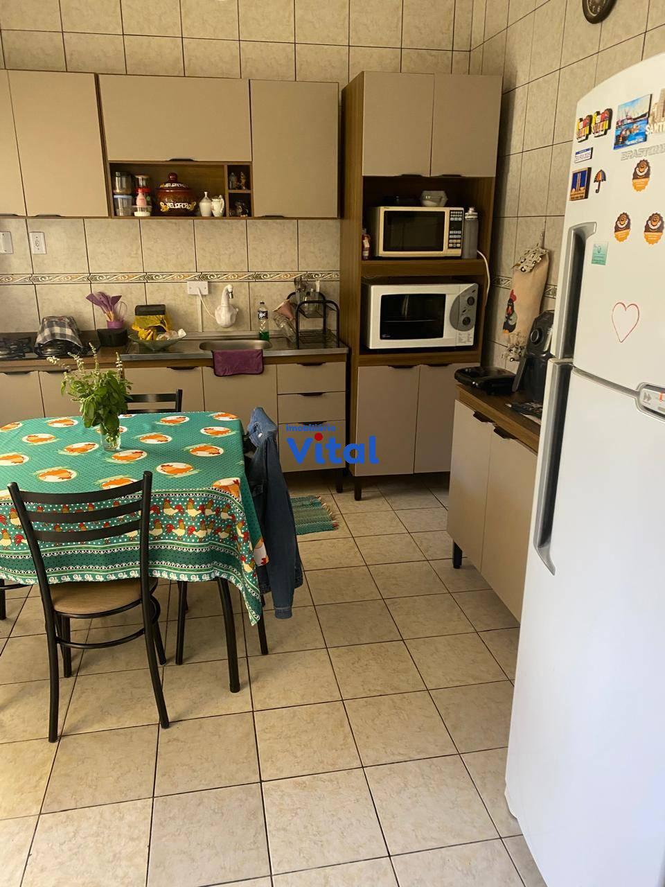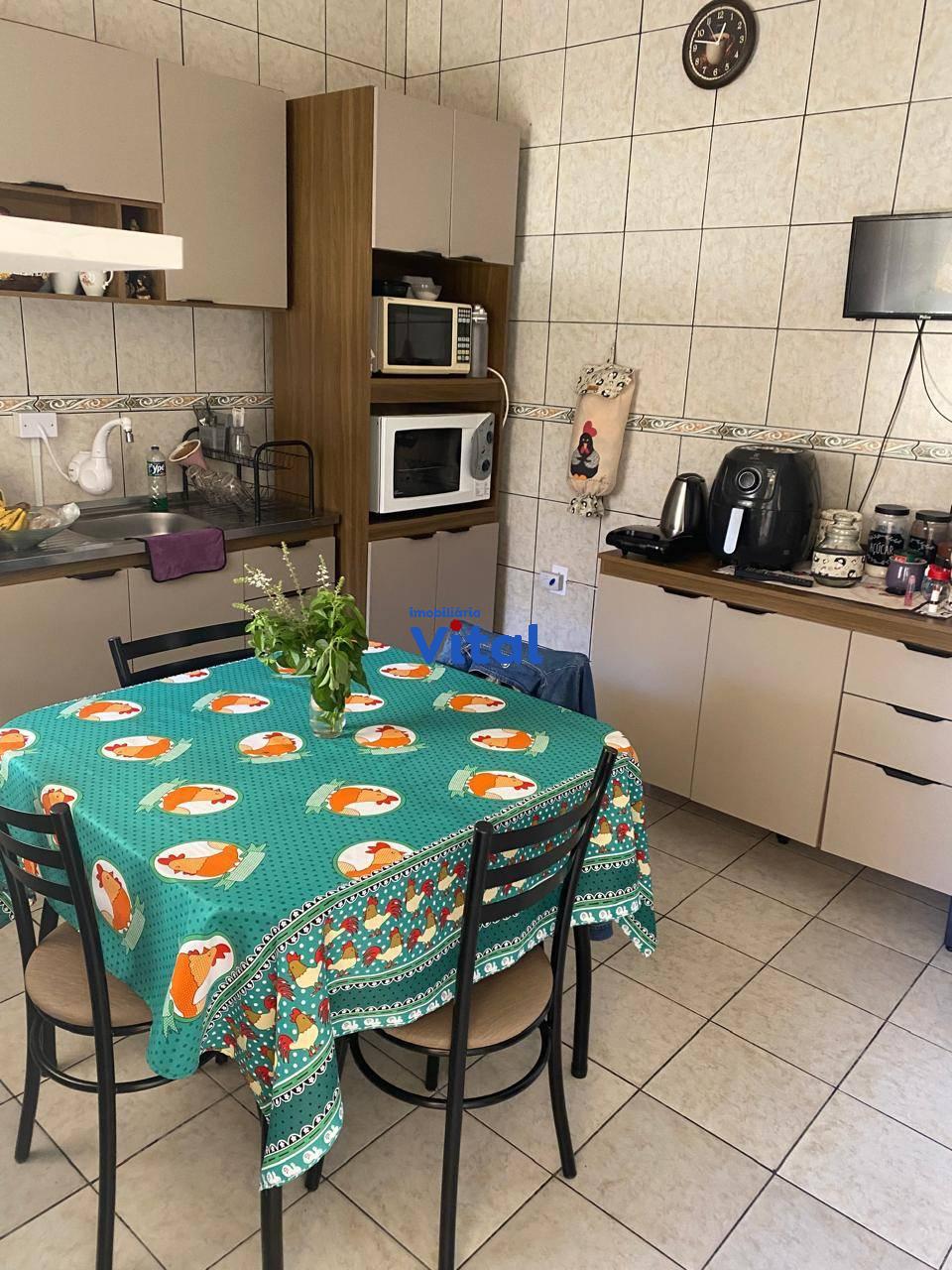 Terreno de 370m² (10m x 37m) com quatro construções. Na parta da frente há uma loja comercial com 40m² e banheiro. No meio há um sobrado de 120m² com três dormitórios, sala de estar, cozinha, banheiro social e área de serviço. Nos fundos há mais uma casa de 64m² com dois dormitórios, sala e cozinha conjugadas, banheiro social e área de serviço. Há ainda junto a casa um espaço gourmet com churrasqueira.