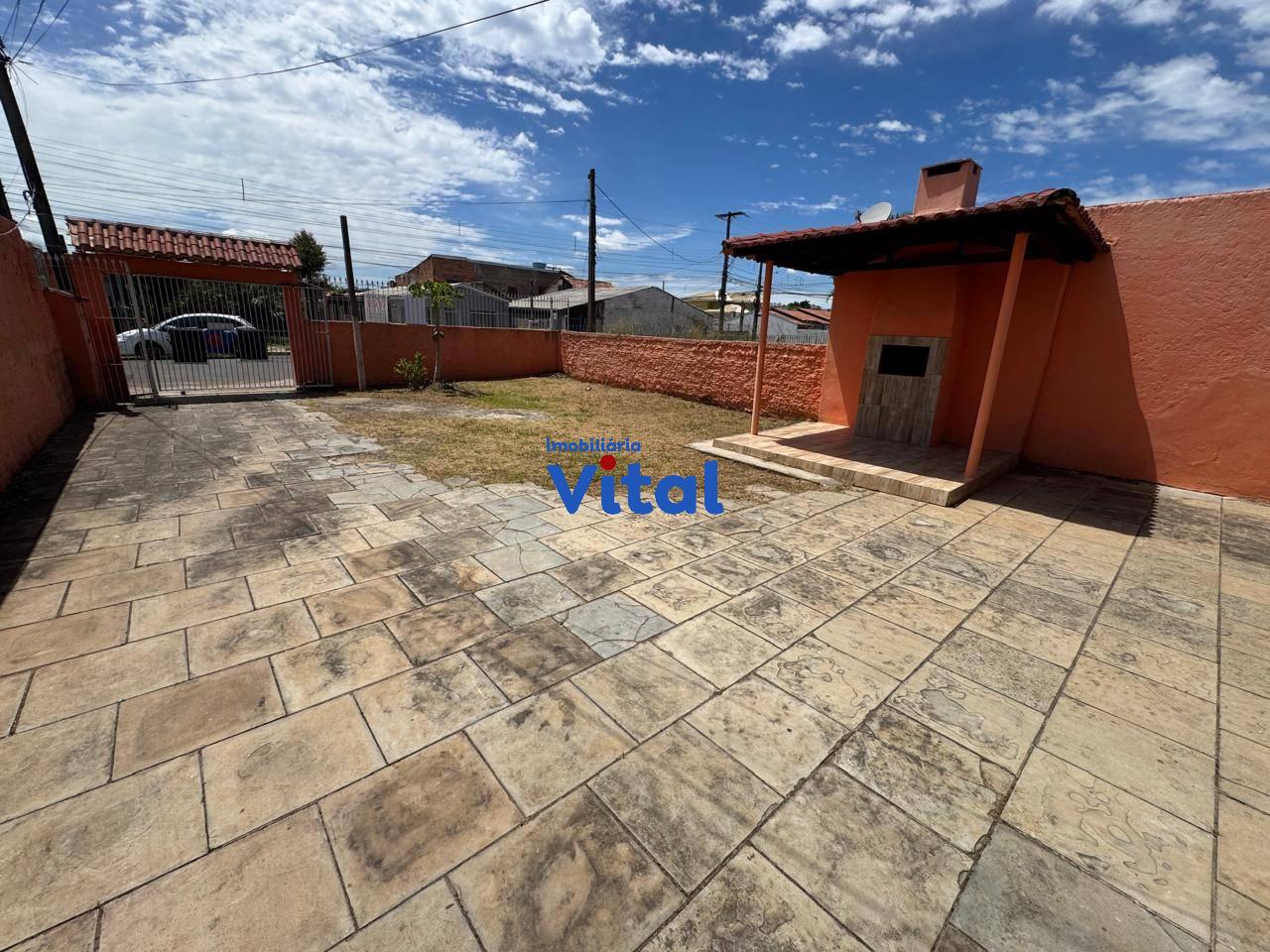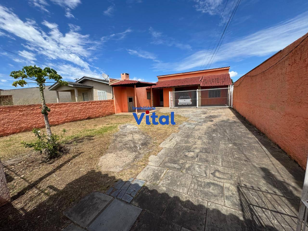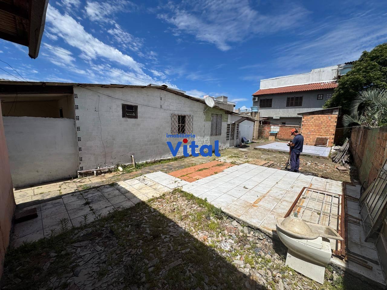 Terreno de 500m² (50m x 10m) metros, com duas casas de alvenaria. A casa principal conta com três dormitórios, sendo um deles suíte, sala de estar, dois banheiros, cozinha e área de serviço. A casa dos fundos é um pouco mais simples, tem dois dormitórios, sala e cozinha conjugadas, banheiro e área de serviço. Há ainda um bom pátio nos fundos e na frene da casa, onde há um quiosque com churrasqueira.