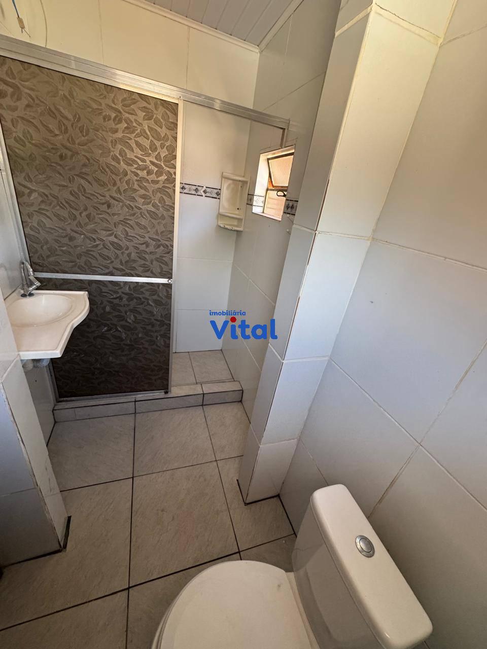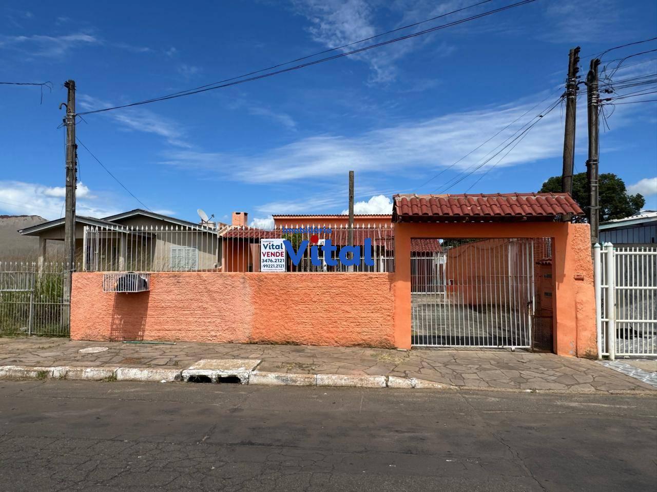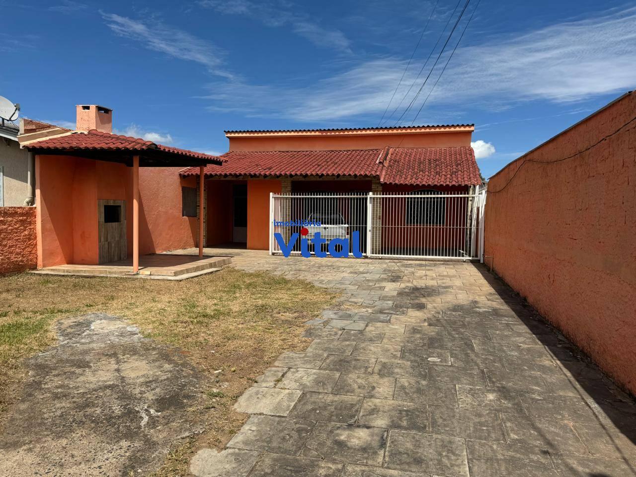 Terreno de 500m² (50m x 10m) metros, com duas casas de alvenaria. A casa principal conta com três dormitórios, sendo um deles suíte, sala de estar, dois banheiros, cozinha e área de serviço. A casa dos fundos é um pouco mais simples, tem dois dormitórios, sala e cozinha conjugadas, banheiro e área de serviço. Há ainda um bom pátio nos fundos e na frene da casa, onde há um quiosque com churrasqueira.