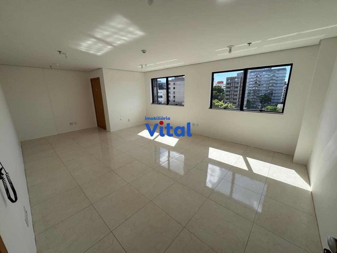 Excelente sala comercial de 38,38m² com banheiro e box coberto para o carro. O prédio possui portaria, banheiro extra em cada andar, ampla sala para reuniões no ultimo andar.