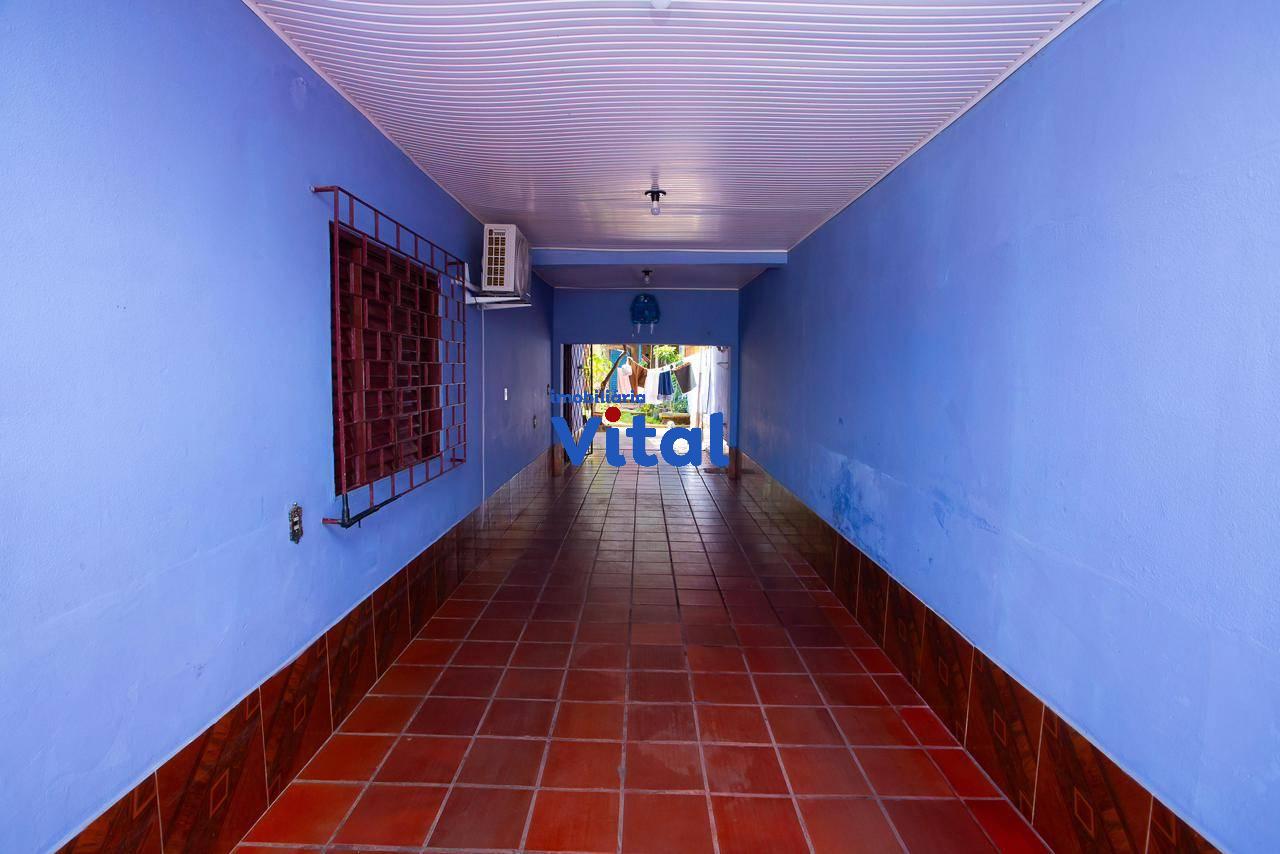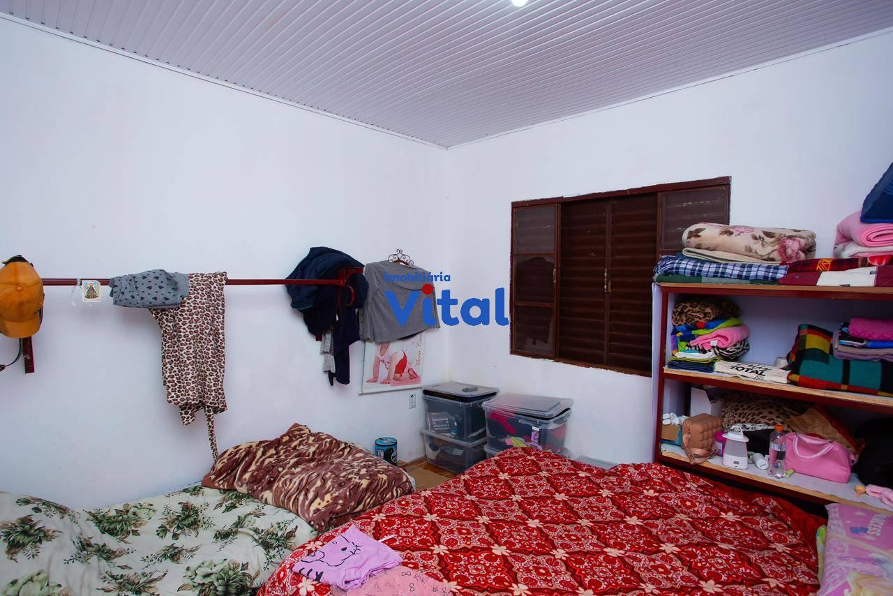 Casa de alvenaria com dois amplos dormitórios, sala de estar, cozinha, banheiro social, área de serviço e garagem para dois carros.