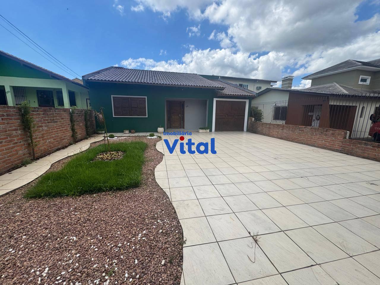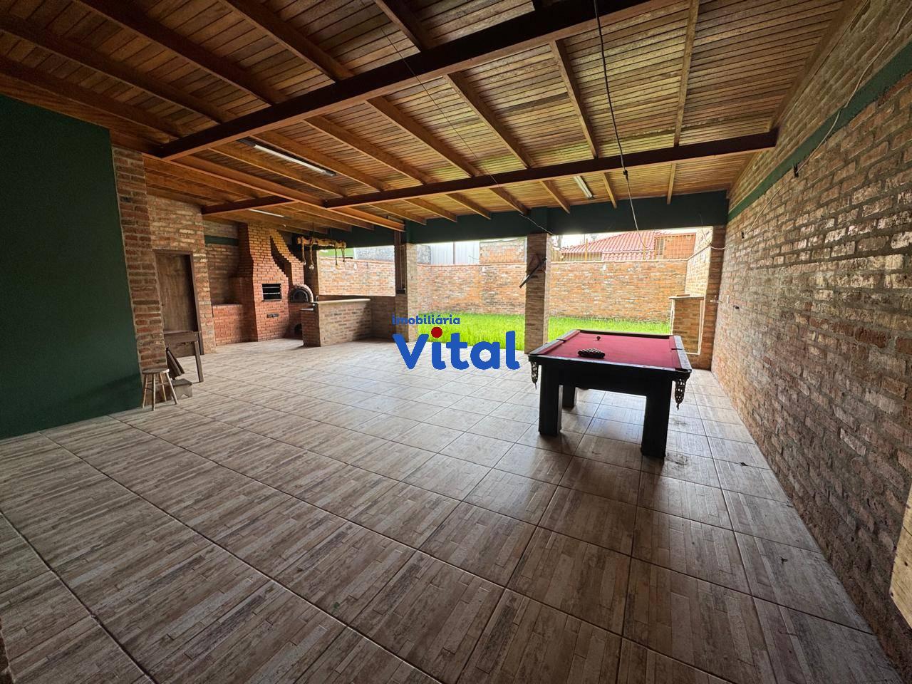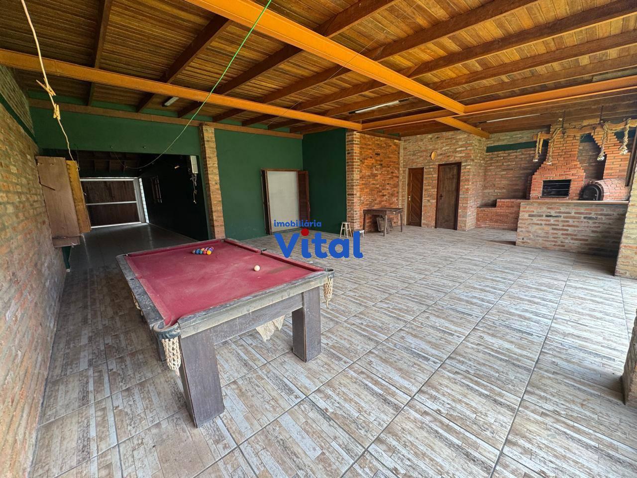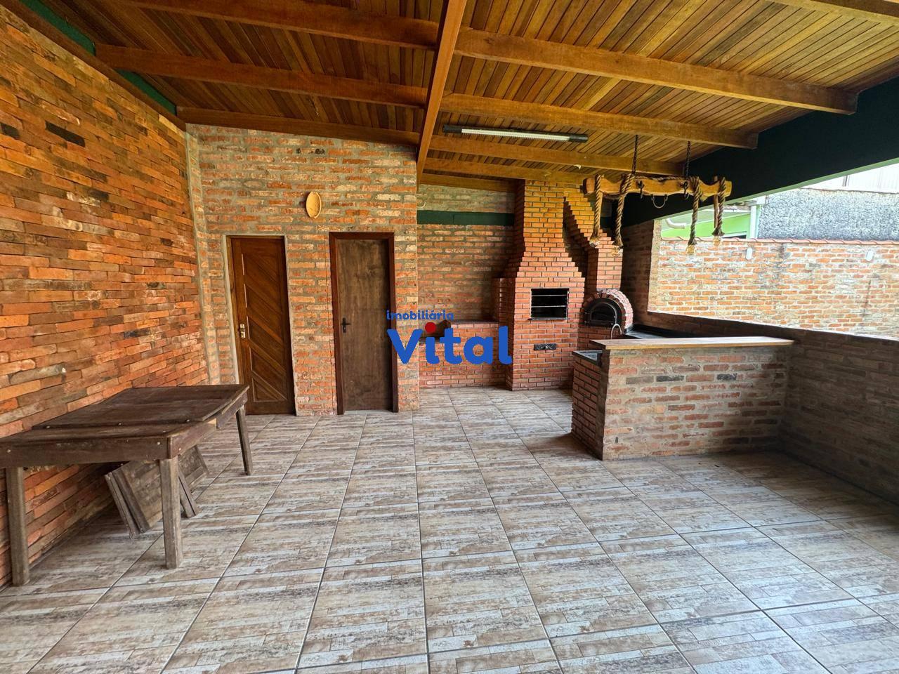 Excelente casa de alvenaria com dois dormitórios sendo um suíte, sala de estar, cozinha, banheiro social, garagem para três carros, ampla área coberta com churrasqueira, forno a lenha e banheiro, área de serviço e amplo pátio na frente e nos fundos. Terreno de 440m² (11m x 40m).