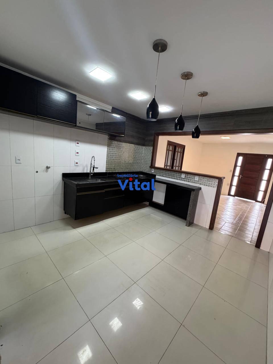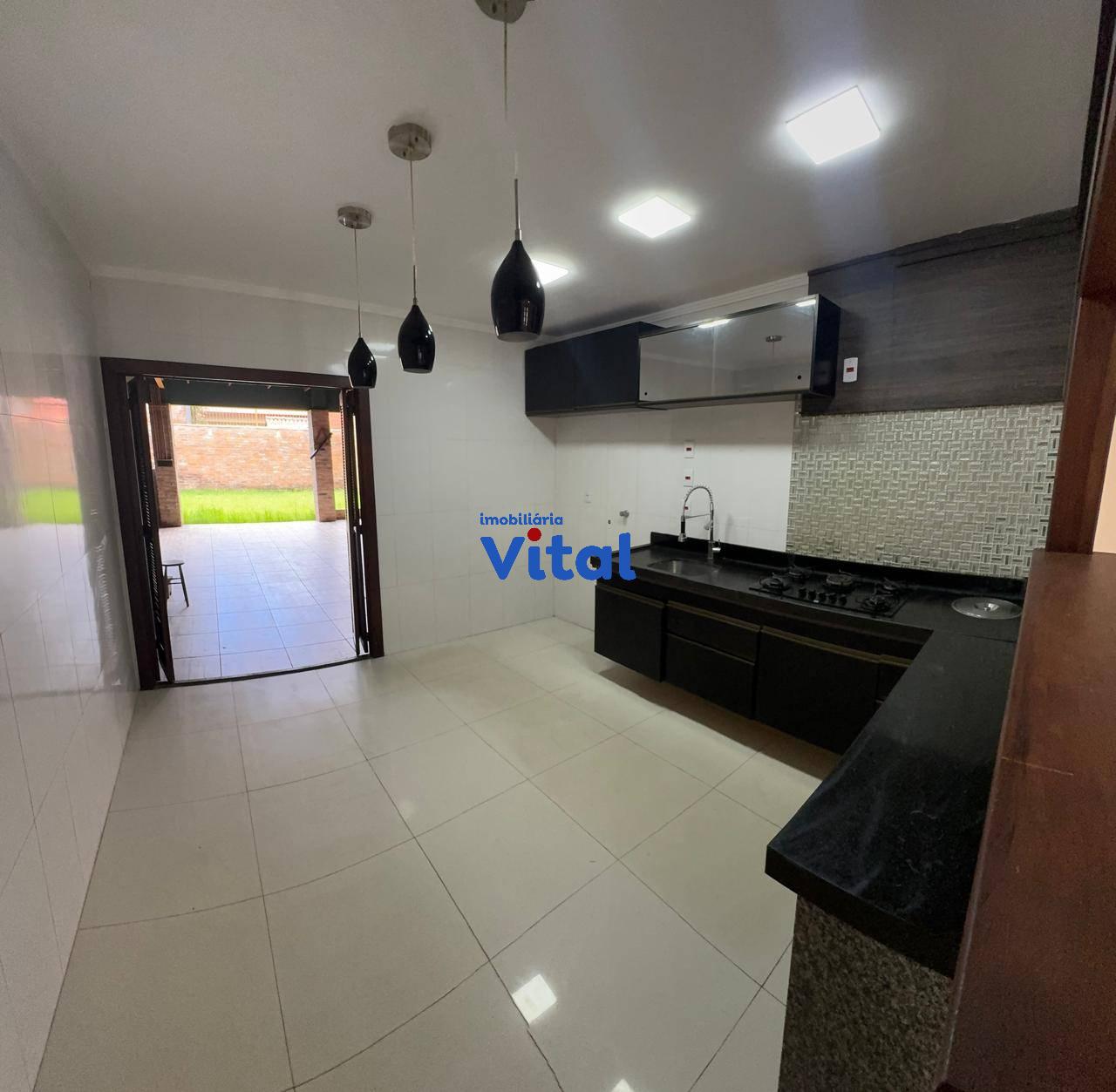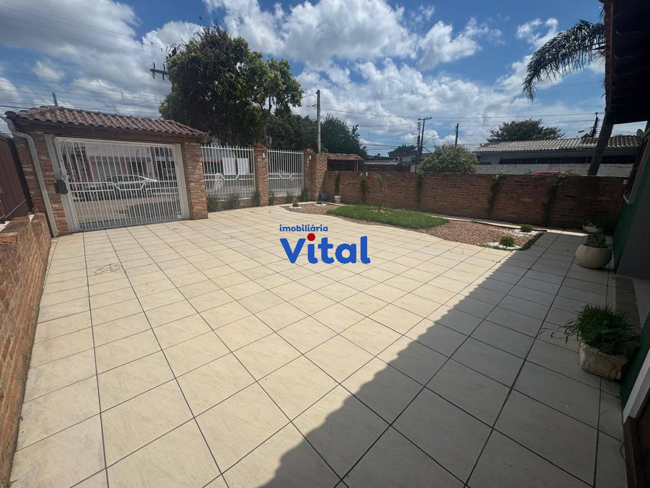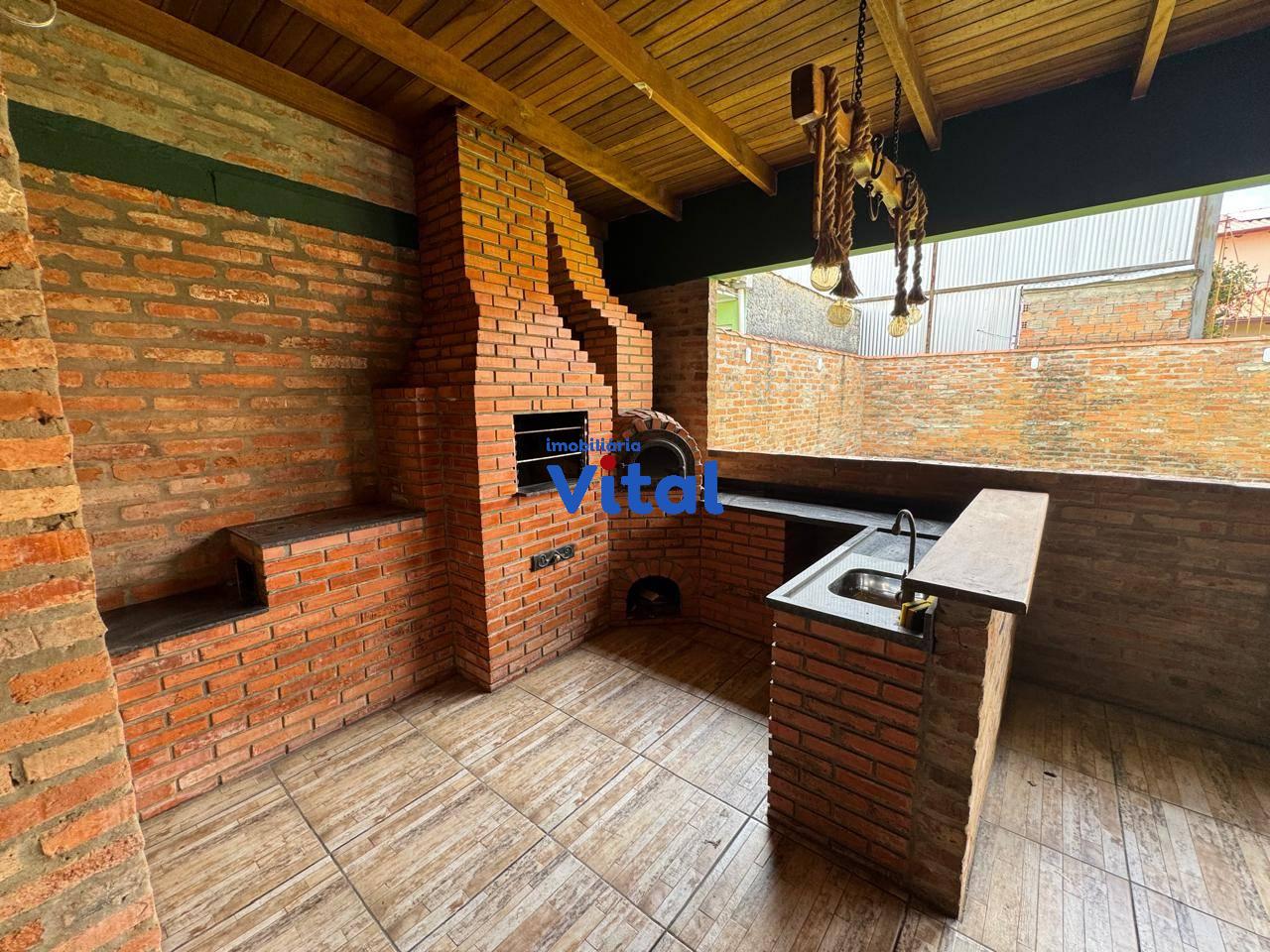 Excelente casa de alvenaria com dois dormitórios sendo um suíte, sala de estar, cozinha, banheiro social, garagem para três carros, ampla área coberta com churrasqueira, forno a lenha e banheiro, área de serviço e amplo pátio na frente e nos fundos. Terreno de 440m² (11m x 40m).