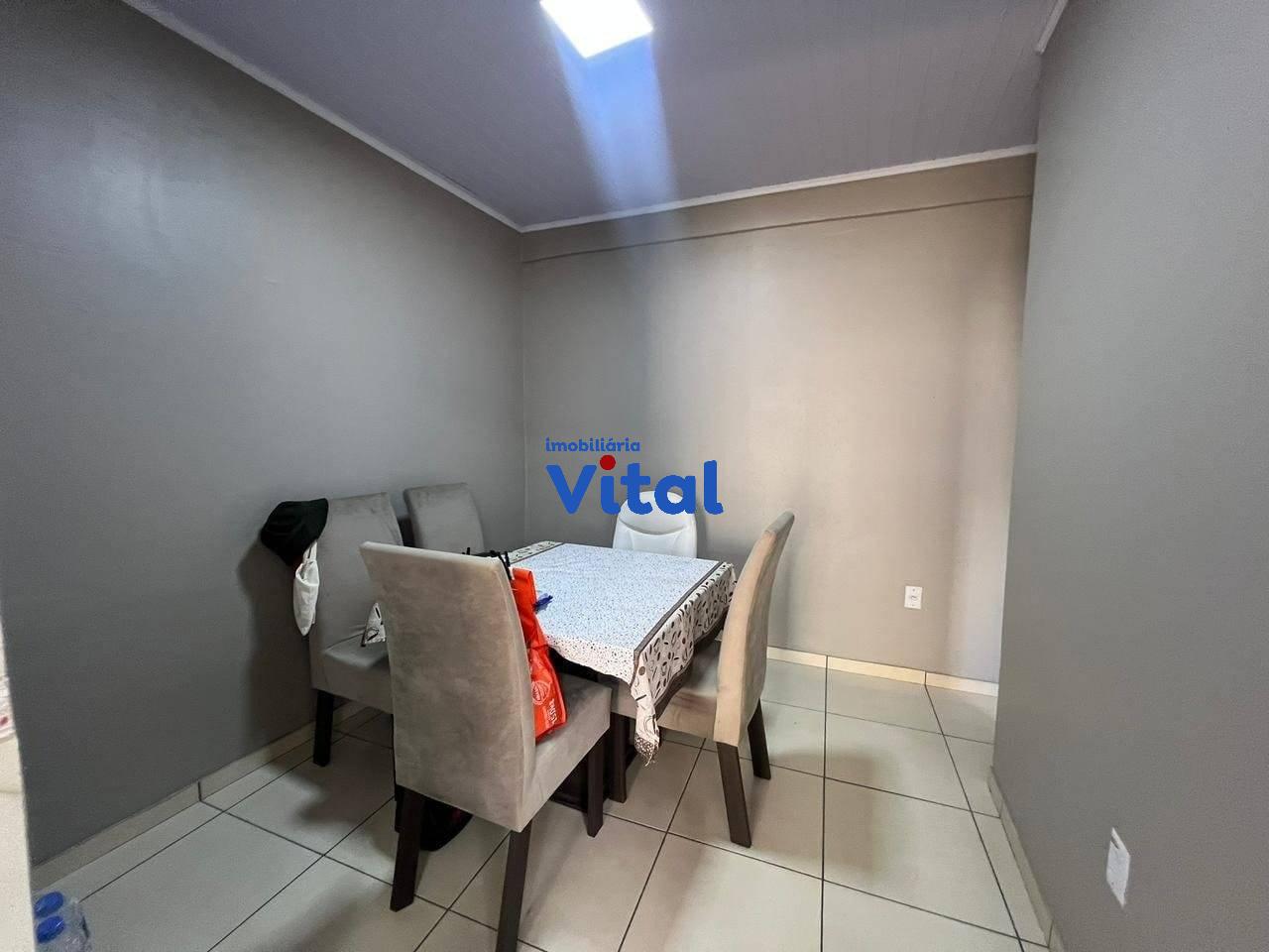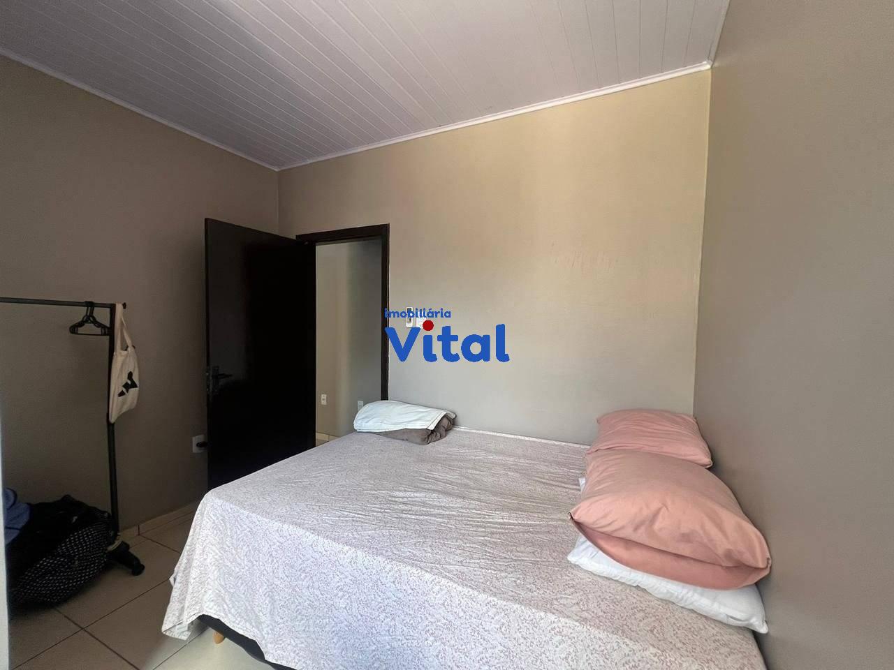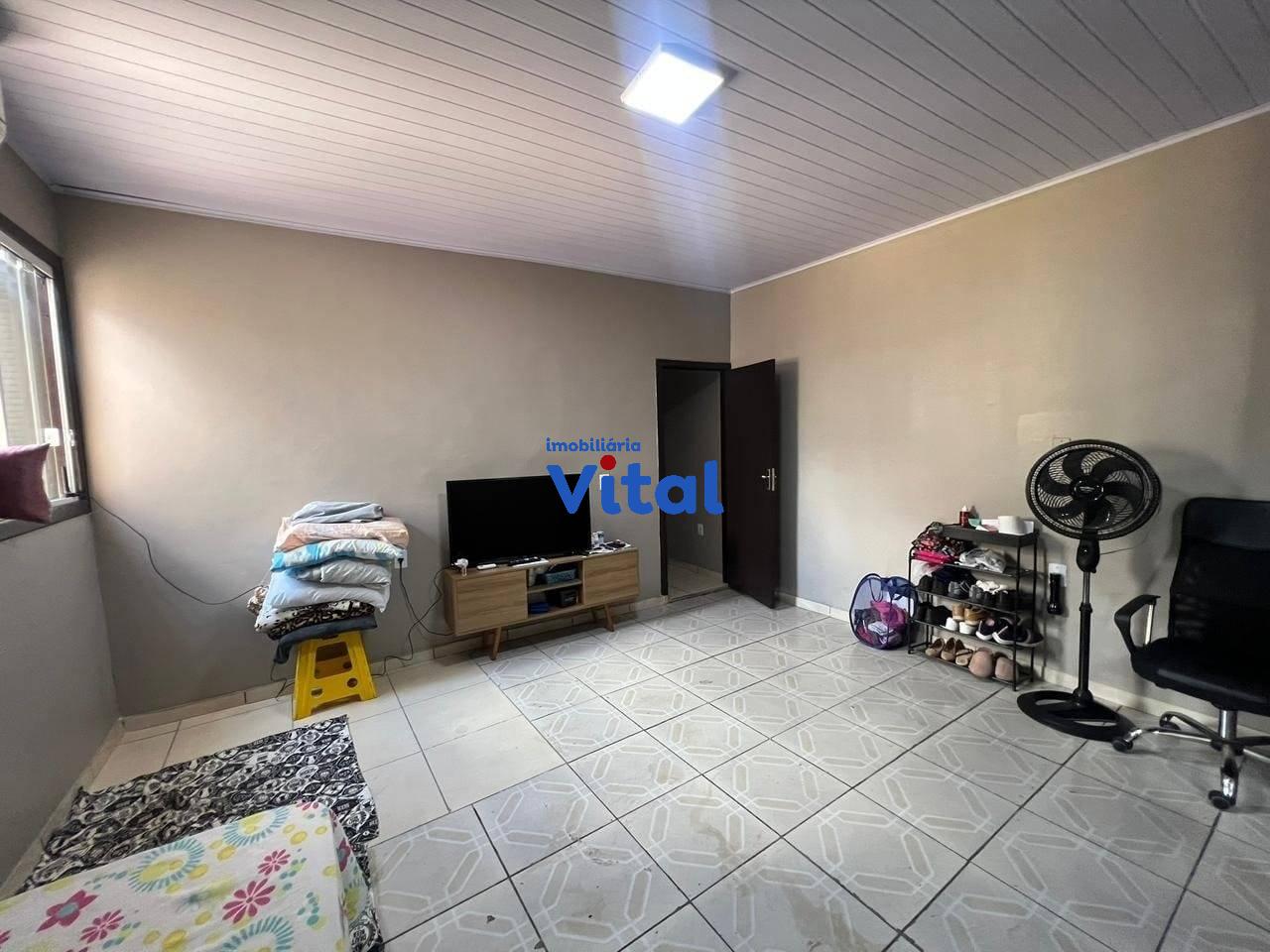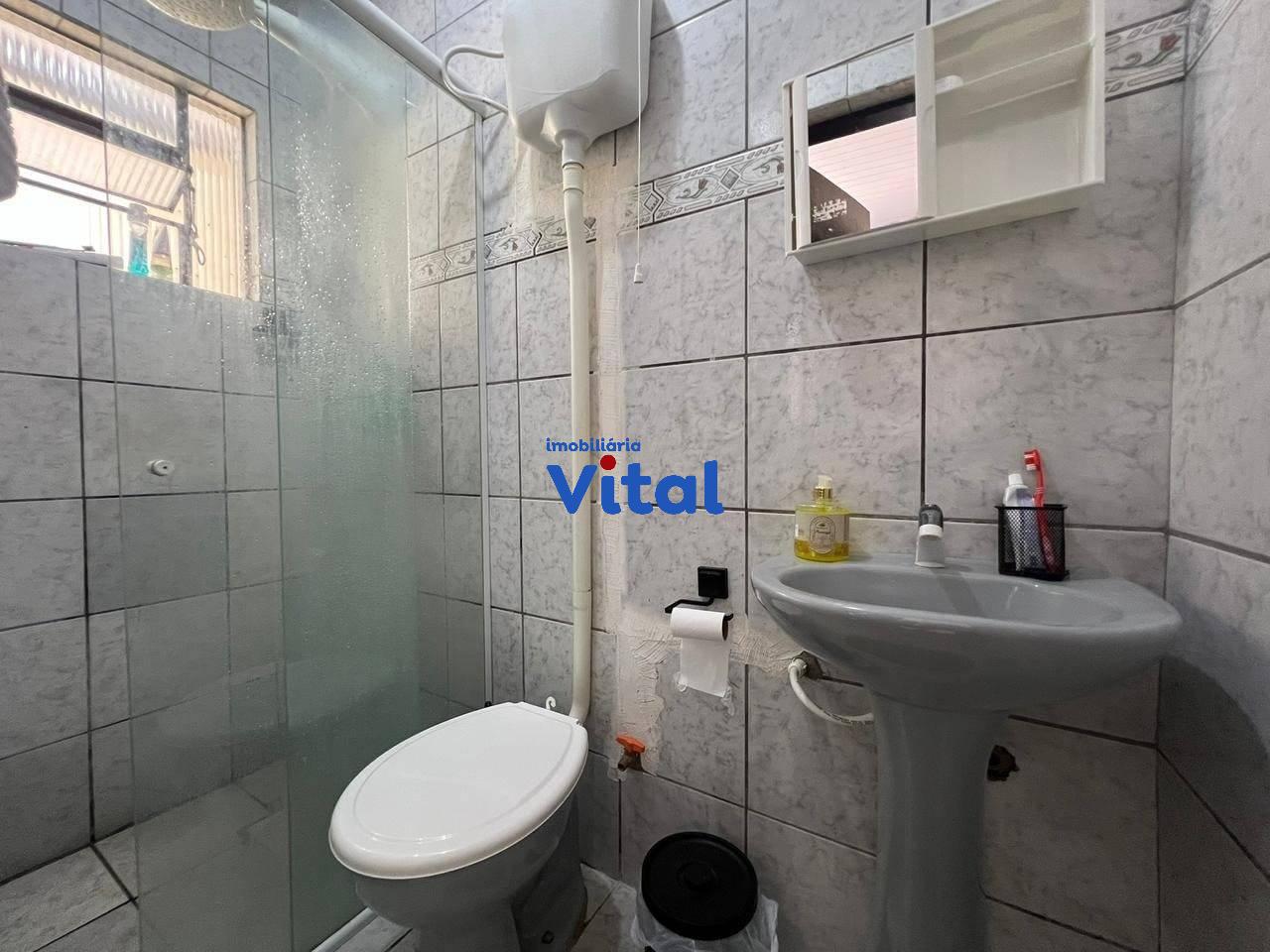 Casa de alvenaria recentemente reformada com dois dormitórios, sala de estar, cozinha, banheiro social e garagem para dois carros. Na frente do terreno, há uma segunda casa, ela era mista e foi desmanchada a parte de madeira. Nessa casa tem hoje sala, cozinha, banheiro e um dormitório que necessitam de reforma. Terreno possui 312m² (10,5m x 29,75m).