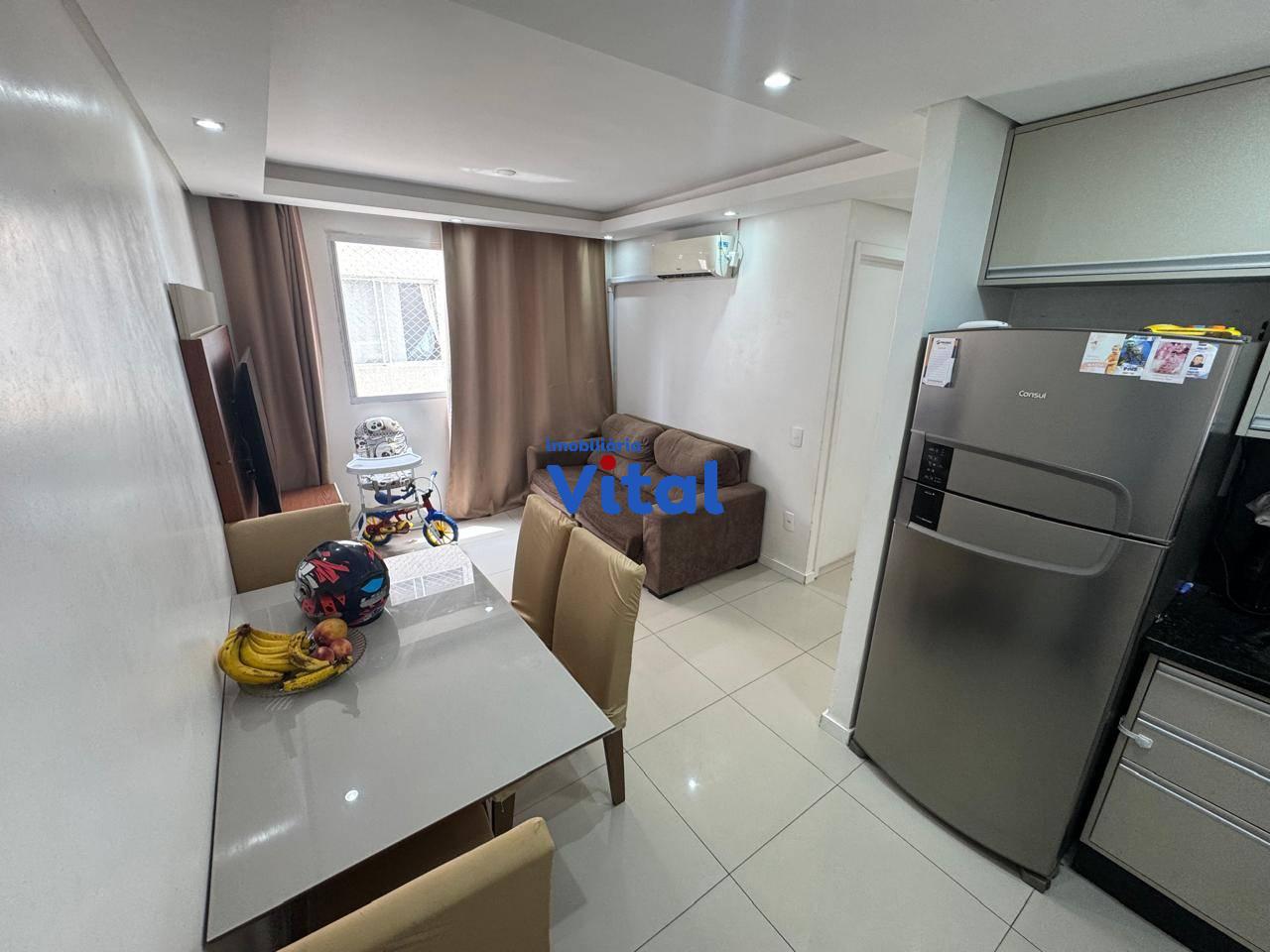 Ótimo apartamento com dois dormitórios, sala de estar, cozinha planejada, banheiro social, área de serviço e garagem rotativa para o carro. Condomínio conta com portaria 24h, salão de festas e playground.