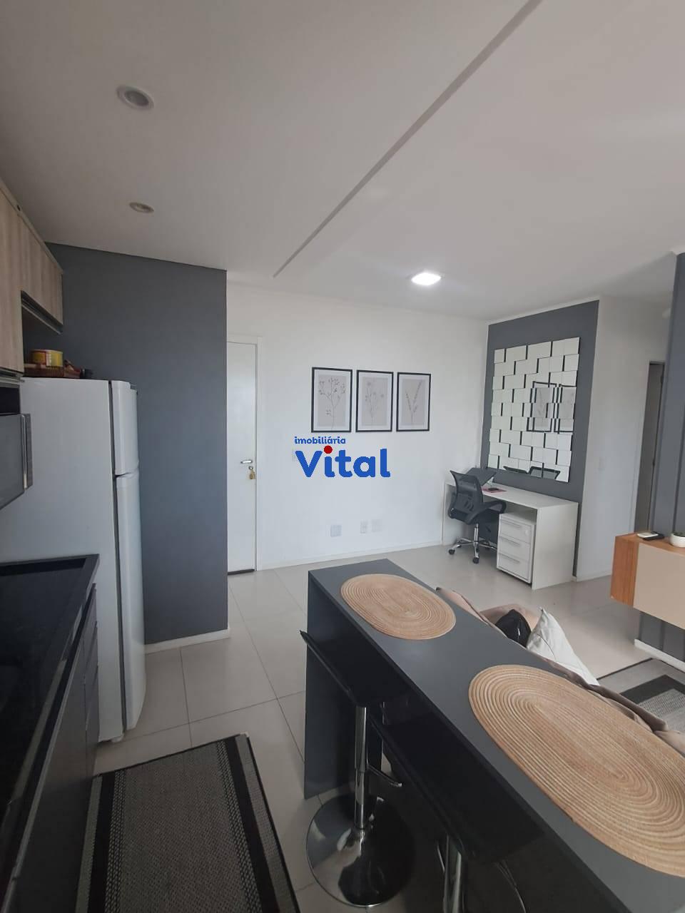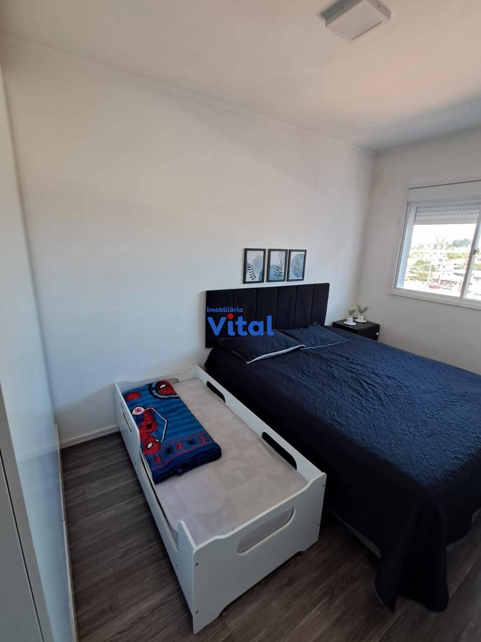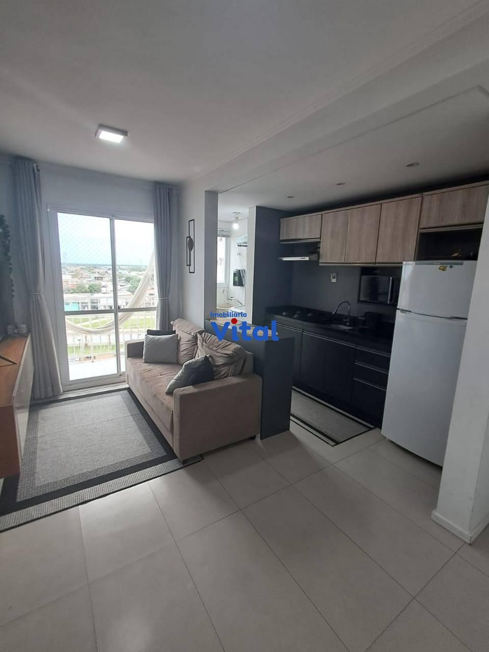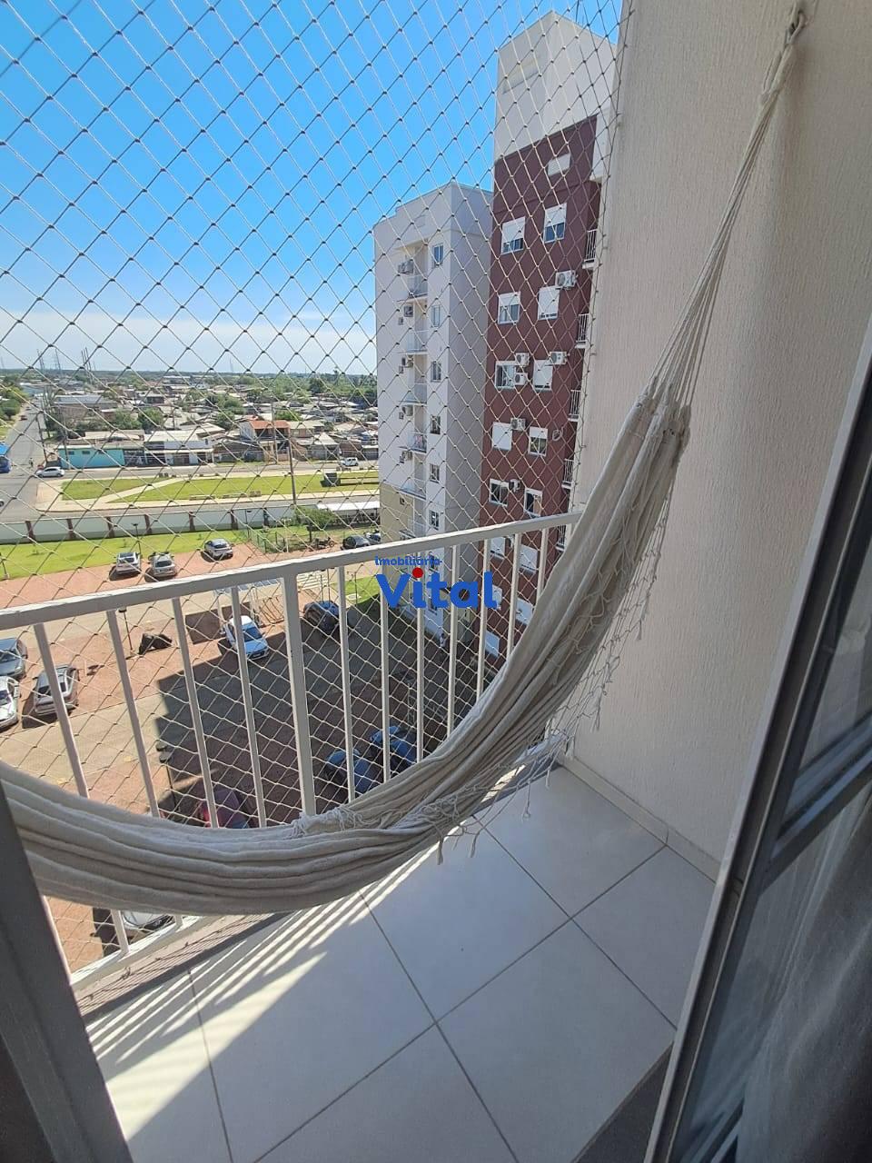 Excelente apartamento com dois dormitórios, sala de estar, cozinha planejada, banheiro social, área de serviço e duas vagas de garagem. Ficam todos os móveis planejados e dois ar condicionados. O condomínio conta com portaria 24h, dois salões de festas, quadra esportiva, mini-mercado, espaço pet e playground.