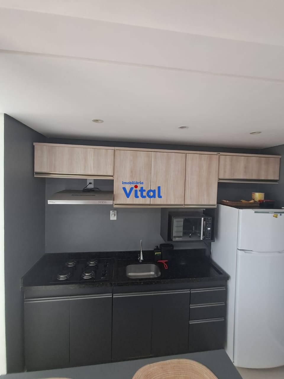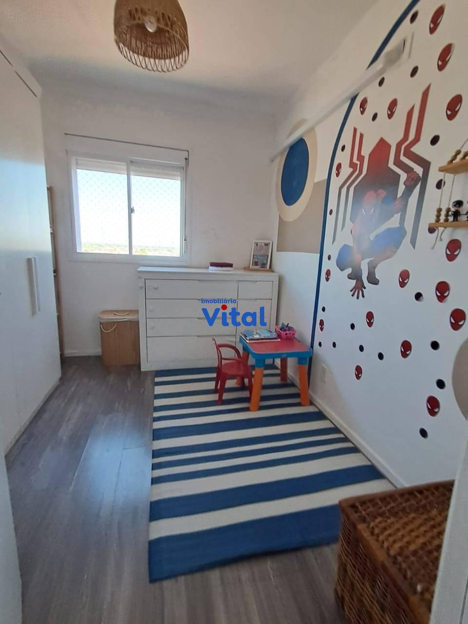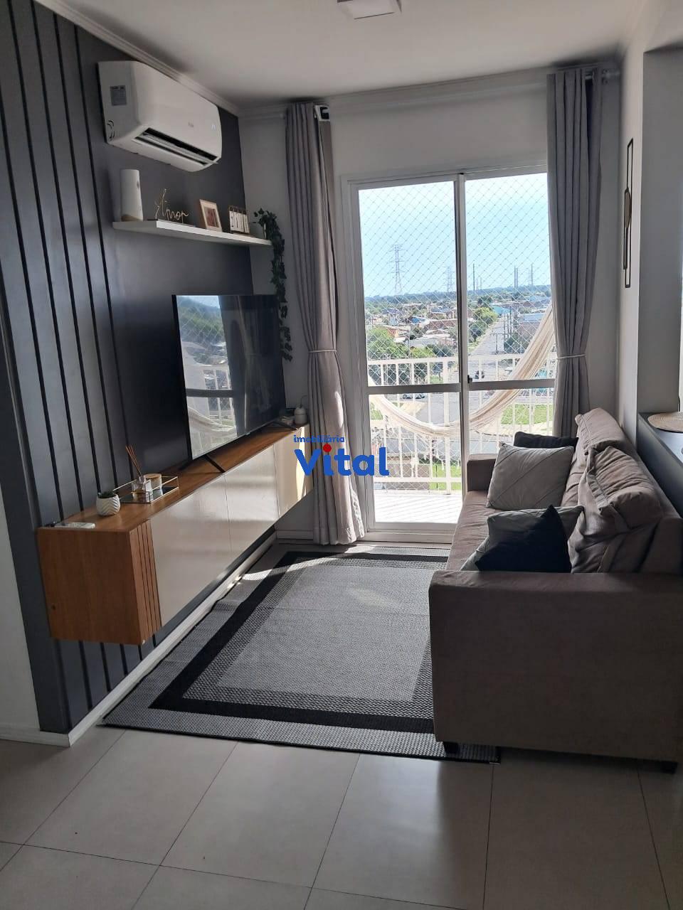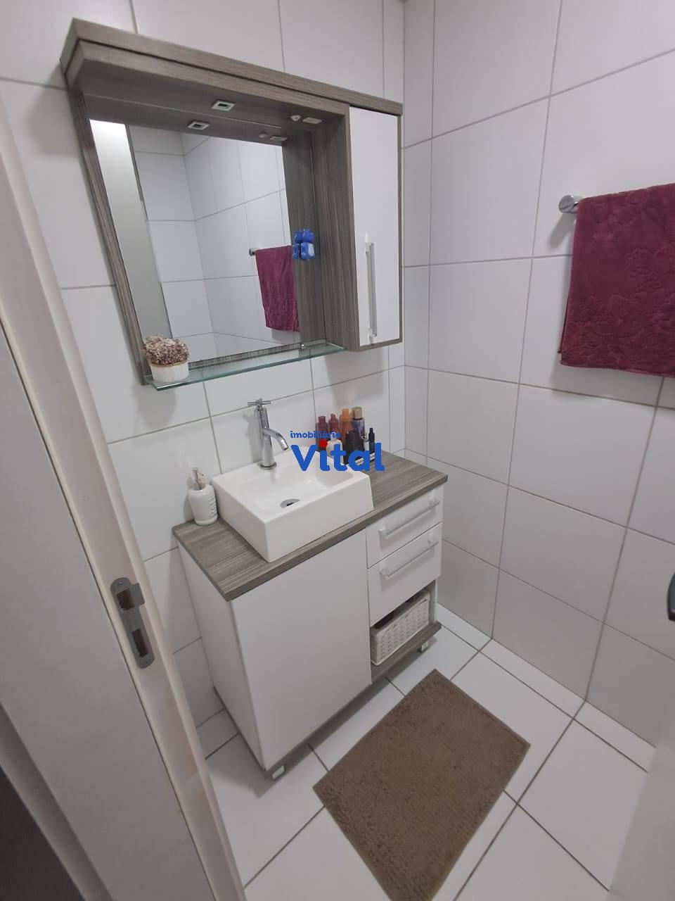 Excelente apartamento com dois dormitórios, sala de estar, cozinha planejada, banheiro social, área de serviço e duas vagas de garagem. Ficam todos os móveis planejados e dois ar condicionados. O condomínio conta com portaria 24h, dois salões de festas, quadra esportiva, mini-mercado, espaço pet e playground.