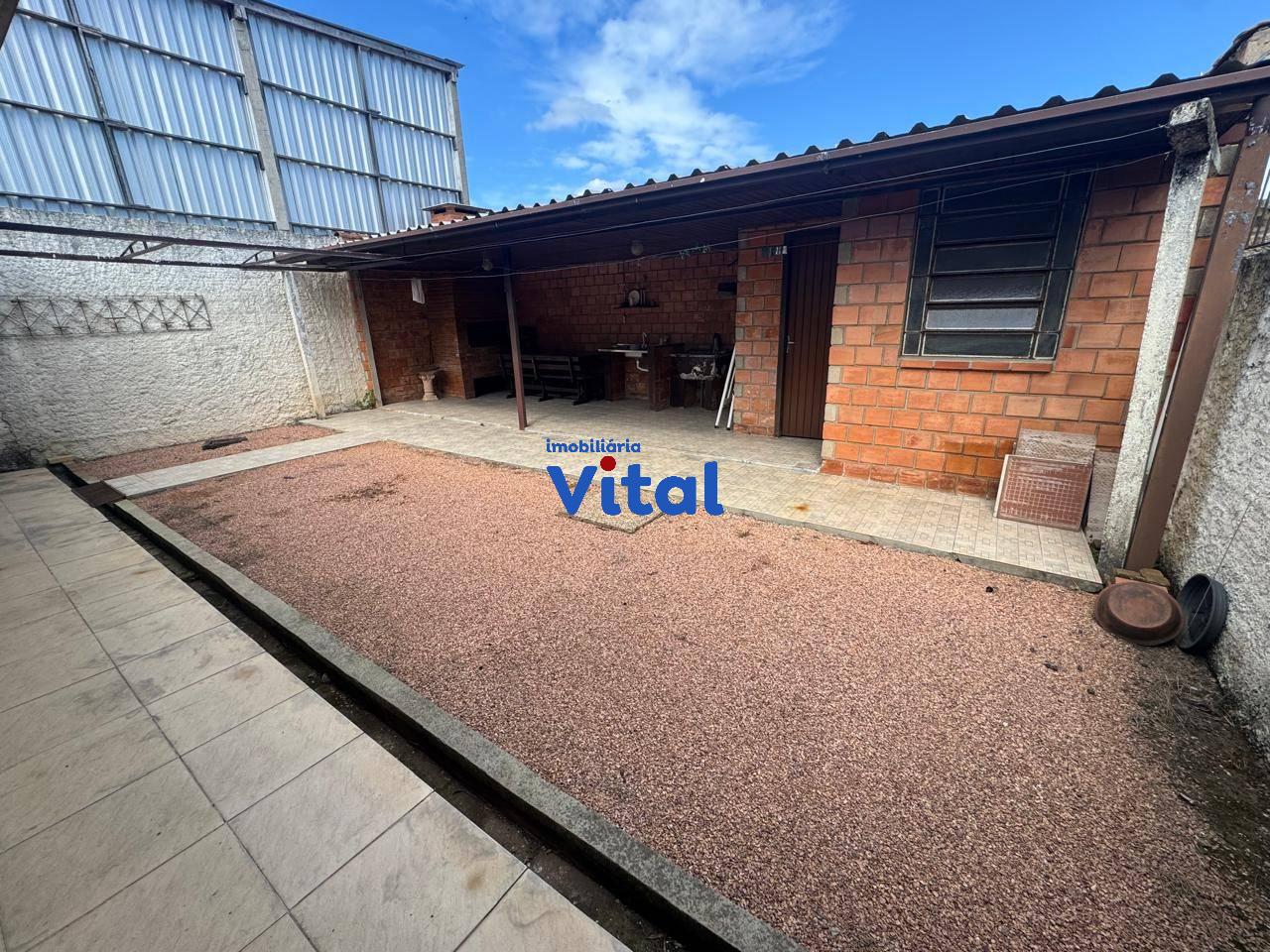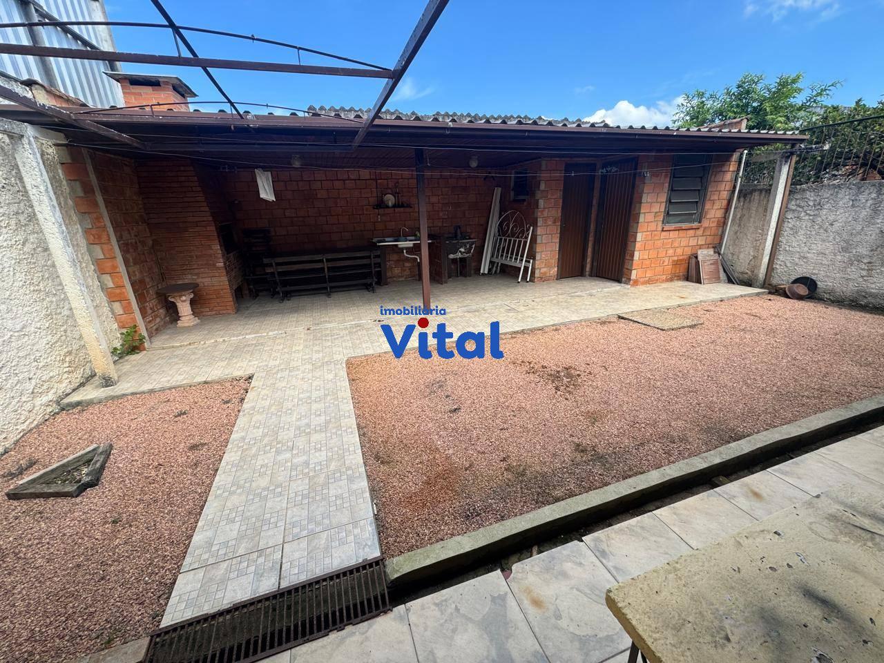 Excelente terreno de 520m² (10m x 52m) com casa de alvenaria. A casa necessita de reformas e possui sala de estar, dois dormitórios, banheiro social, cozinha, área de serviço, garagem para dois carros mais uma área coberta nos fundos com churrasqueira. O terreno foi bem aterrado e é muito bem localizado no bairro.