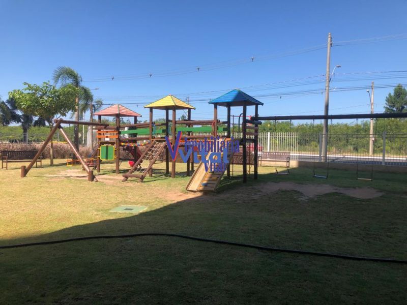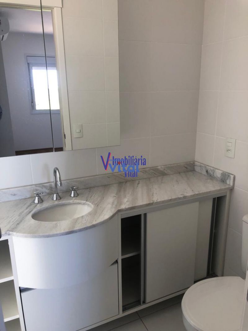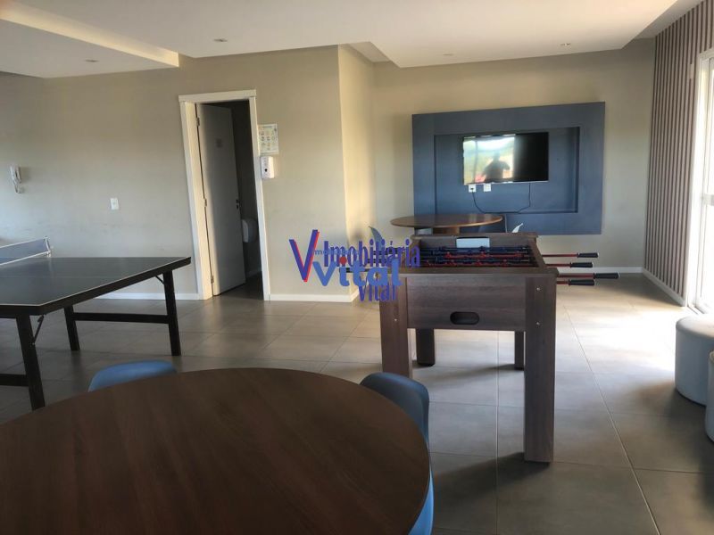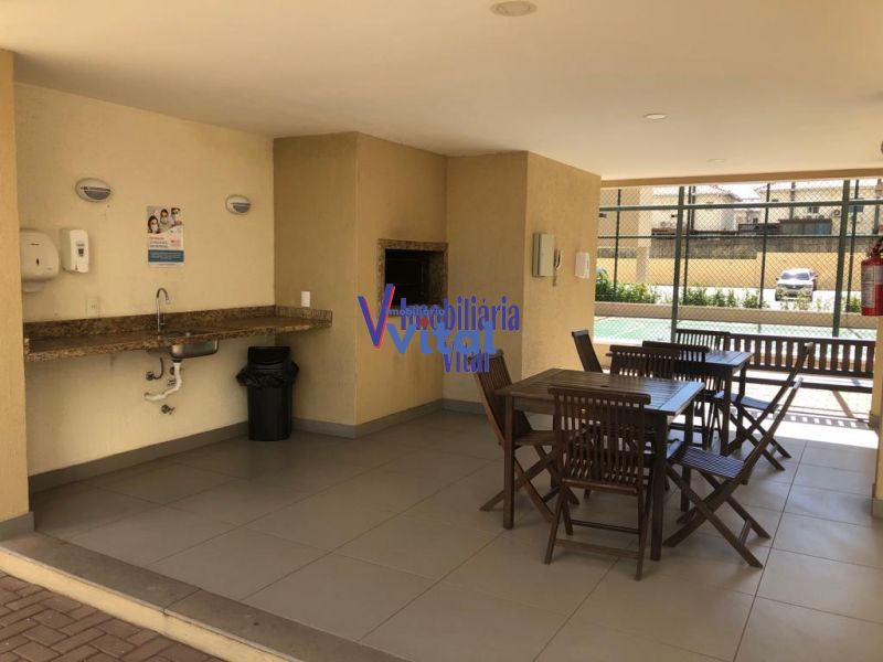 Apartamento com três dormitórios sendo um suíte, sala de estar, cozinha com churrasqueira, área de serviço, banheiro social e box para dois carros. Ficam no imóvel os móveis da cozinha, banheiros, armário no quarto de casal e quatro ar-condicionados Split já instalados. Condomínio possui portaria 24h, salão de festas, Academia, sala de jogos, brinquedoteca, quadras esportivas, quioesques com churrasqueira, piscina adulta a infantil, minimercado (GELB) entre outros atrativos. Relógio de água, gás e luz individuais.