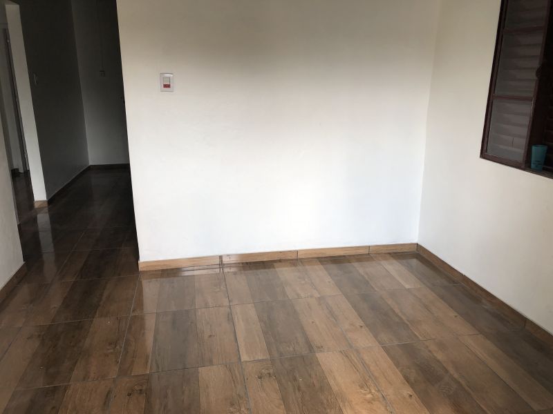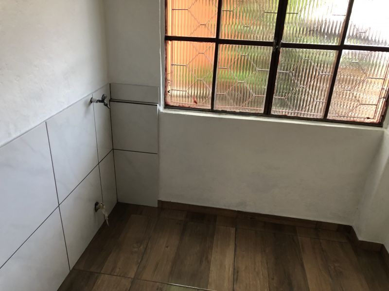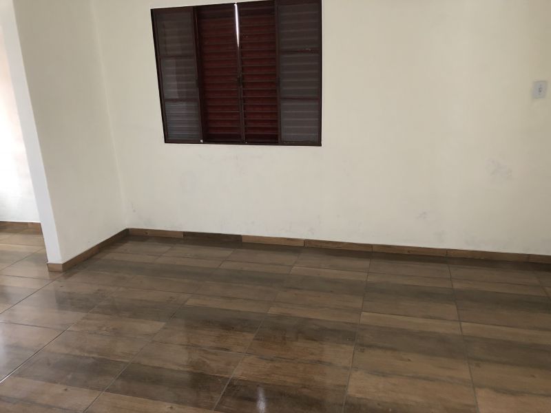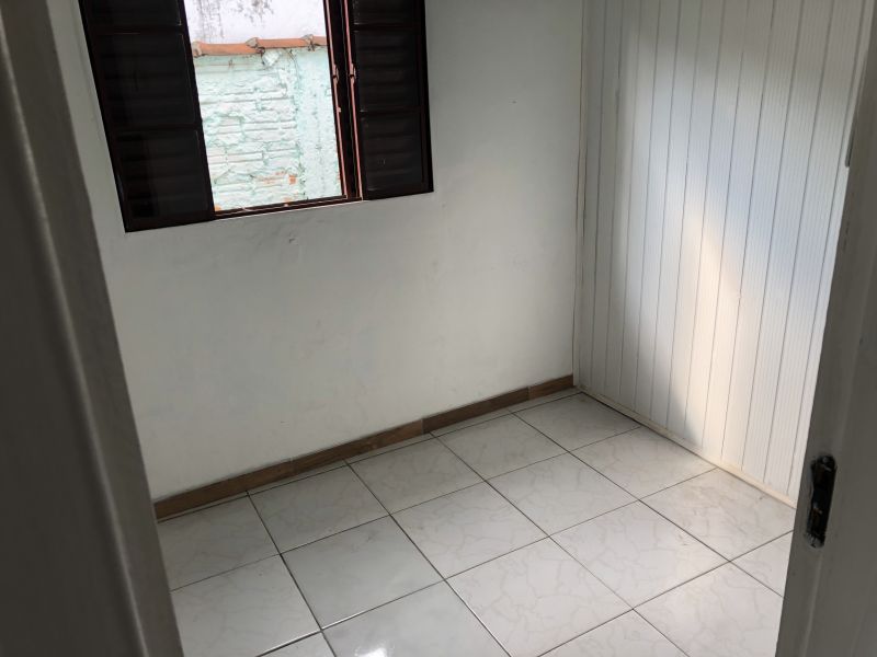 Uma casa de alvenaria de frente com tres quartos, sala, cozinha, banheiro, area servico, entrada p/carro descoberto na lateral, divide agua. DIVIDE PATIO COM MAIS DUAS CASAS DE FUNDOS.