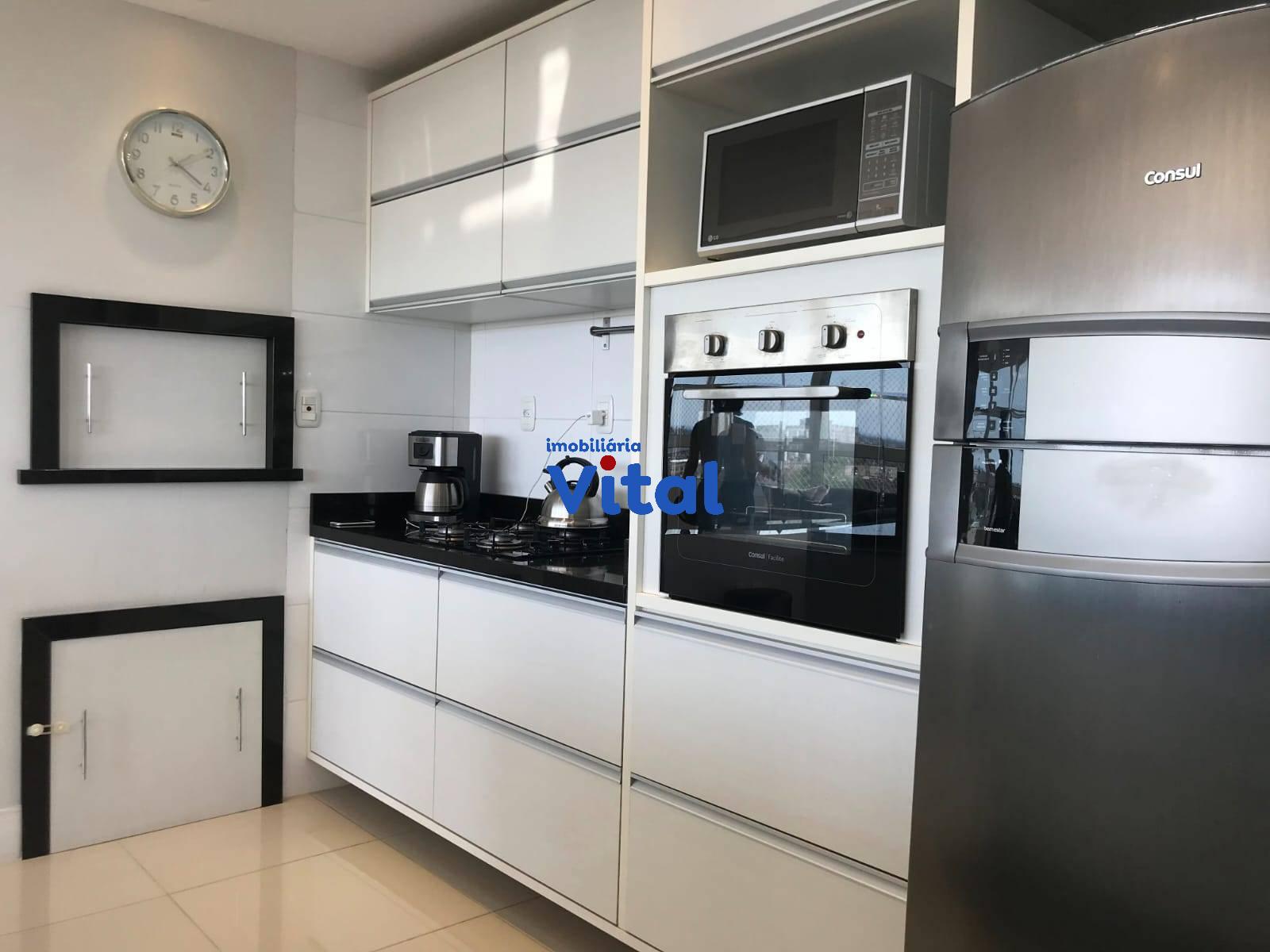 Excelente apartamento com dois dormitórios sendo um suíte, sala de estar e jantar, cozinha integrada com churrasqueira, banheiro social, área de serviço e box para dois carros. Possui uma linda vista das janelas envidraçadas proporcionando maior iluminação.
