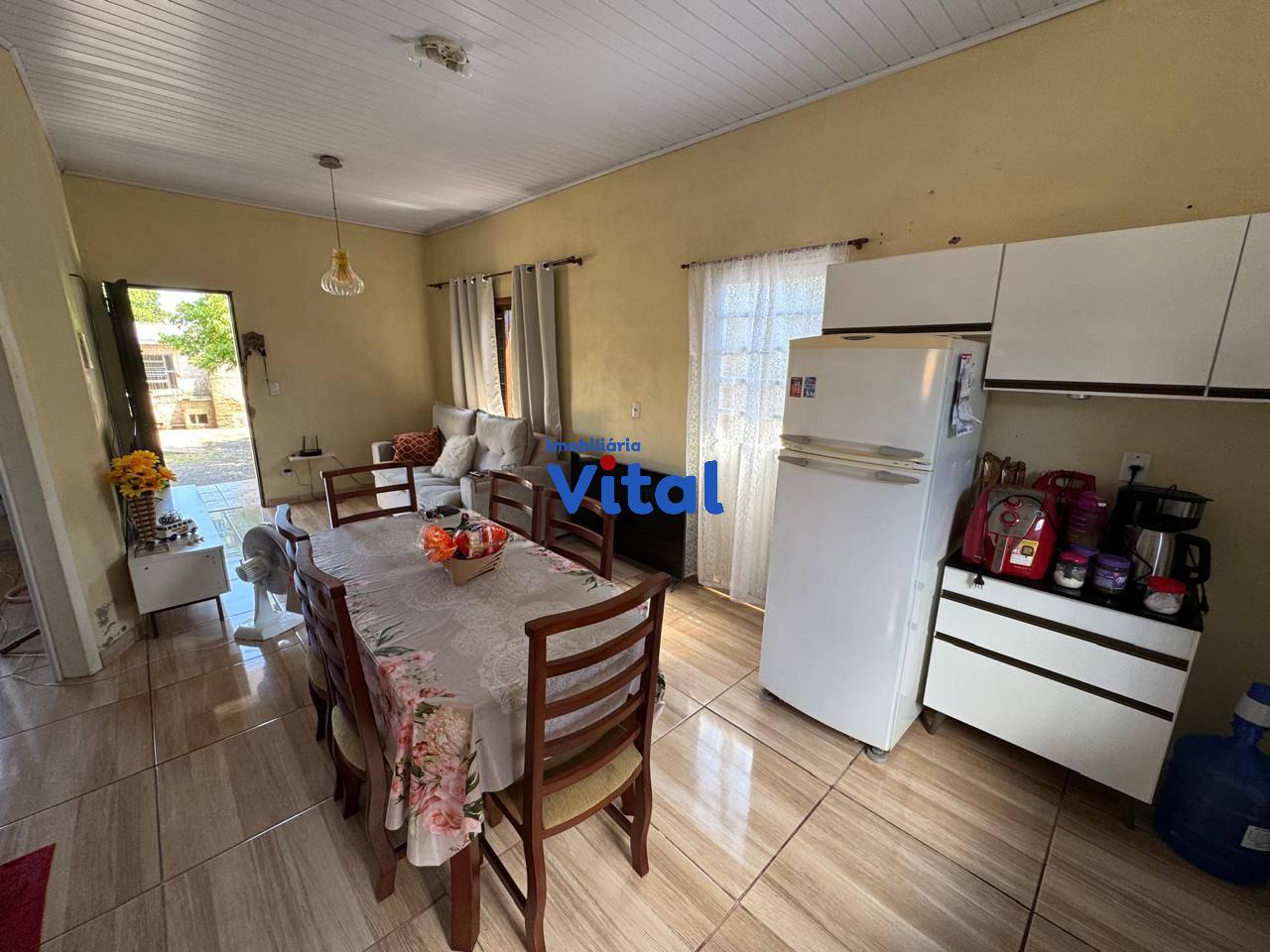 Casa de alvenaria reformada recentemente. A casa possui dois dormitórios, sala de estar integrada com cozinha, banheiro social, área de serviço e garagem para dois carros com churrasqueira. Há no terreno outra casa mista de dois dormitórios que precisa de reformas. Terreno de 400m² (10m x 40m).