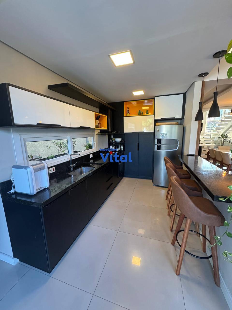Excelente sobrado finamente mobiliado. O imóvel possui uma ampla suíte máster bom banheira de hidromassagem, closet e sacada envidraçada, dois dormitórios no andar térreo, sala de estar, quatro banheiros, sala de estar intimo no segundo andar, cozinha planejada, área de serviço e garagem para dois carros. Nos fundos do imóvel há ainda uma piscina e uma ótima área gourmet, um depósito e um lavabo. Ficam no imóvel todos os móveis planejados e os móveis soltos também.