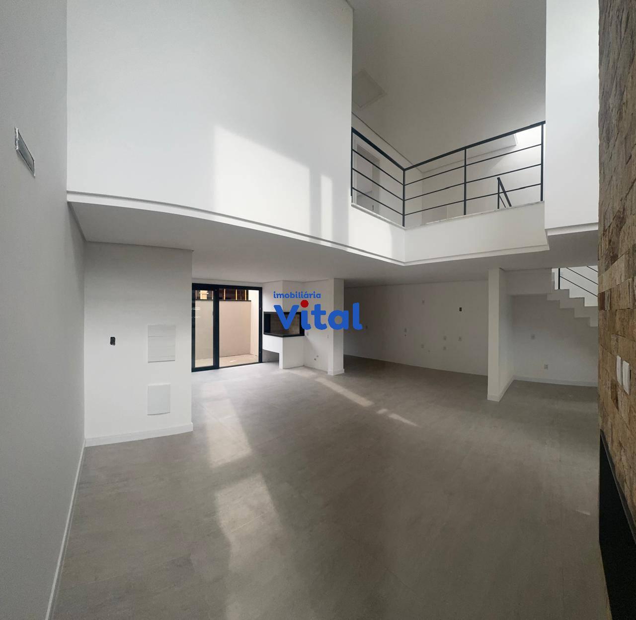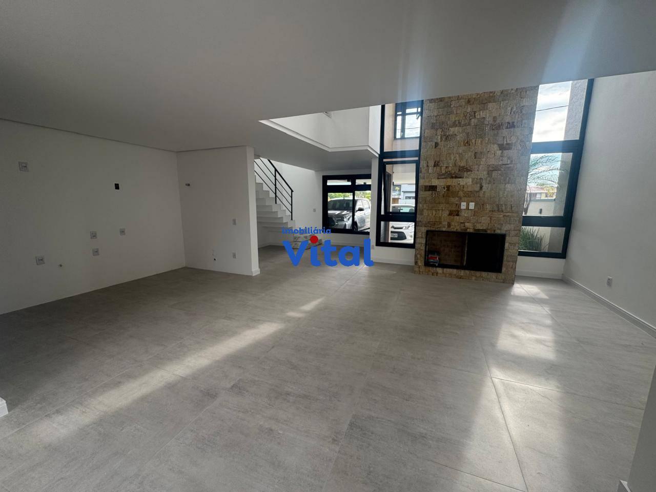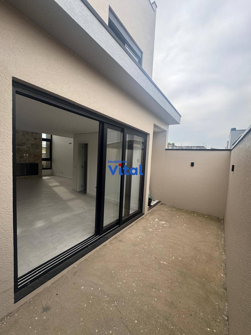 Excelente sobrado recentemente construído com três amplos dormitórios sendo um com sacada e suíte, ampla sala de estar com lareira integrada com sala de jantar, área gourmet com churrasqueira, cozinha, três banheiros, área de serviço e garagem para dois carros. O sobrado foi recentemente construído, possui escada e acabamentos em mármore, esquadrias em PVC preto com possibilidade de automatização, pé direito duplo na sala, espera de ar condicionado em todos os quartos e na sala.