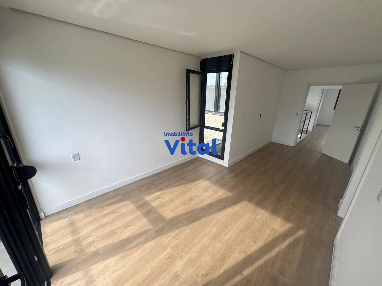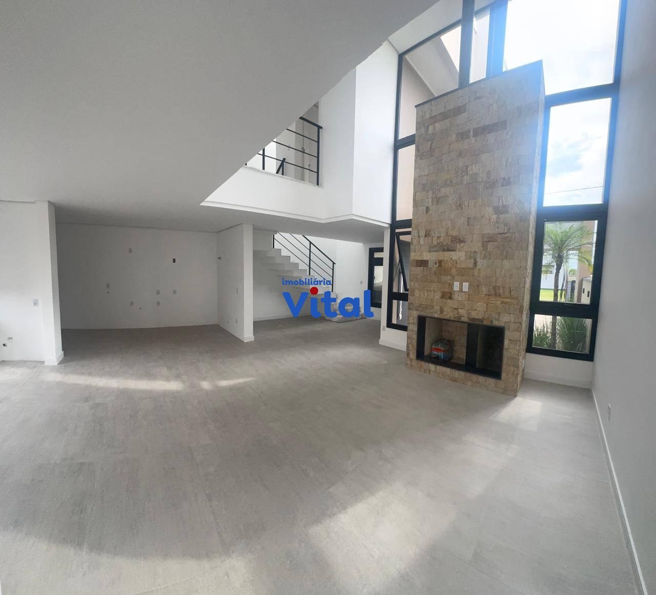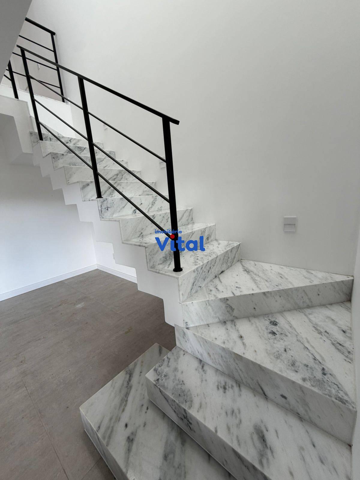 Excelente sobrado recentemente construído com três amplos dormitórios sendo um com sacada e suíte, ampla sala de estar com lareira integrada com sala de jantar, área gourmet com churrasqueira, cozinha, três banheiros, área de serviço e garagem para dois carros. O sobrado foi recentemente construído, possui escada e acabamentos em mármore, esquadrias em PVC preto com possibilidade de automatização, pé direito duplo na sala, espera de ar condicionado em todos os quartos e na sala.
