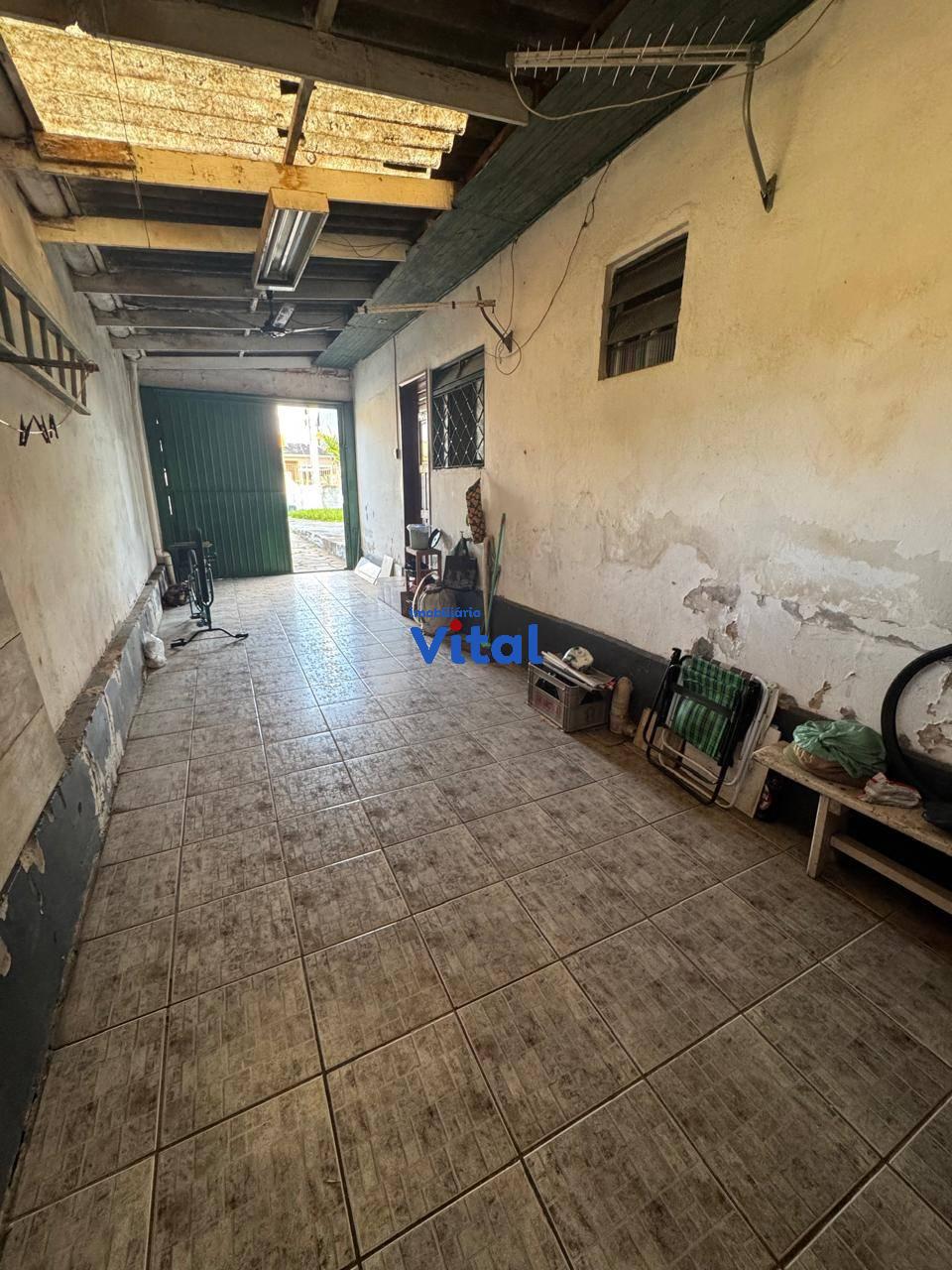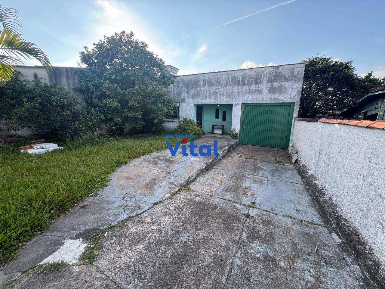 Casa de alvenaria com dois dormitórios, sala de estar, cozinha, banheiro social, área de serviço, ampla garagem com churrasqueira. Terreno possui 250m² (10m x 25m). Imóvel não aceita financiamento.